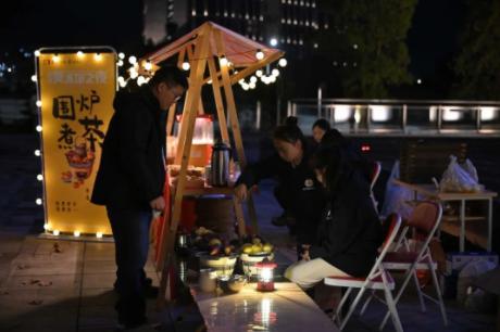 在“围炉煮茶”区域,市民张女士与朋友们正一边品茶一边聊天。她说:“艺术配热茶,这个冬夜也太惬意了。在这样轻松的氛围中,艺术自然地融入我们的生活,变得可亲可近。”