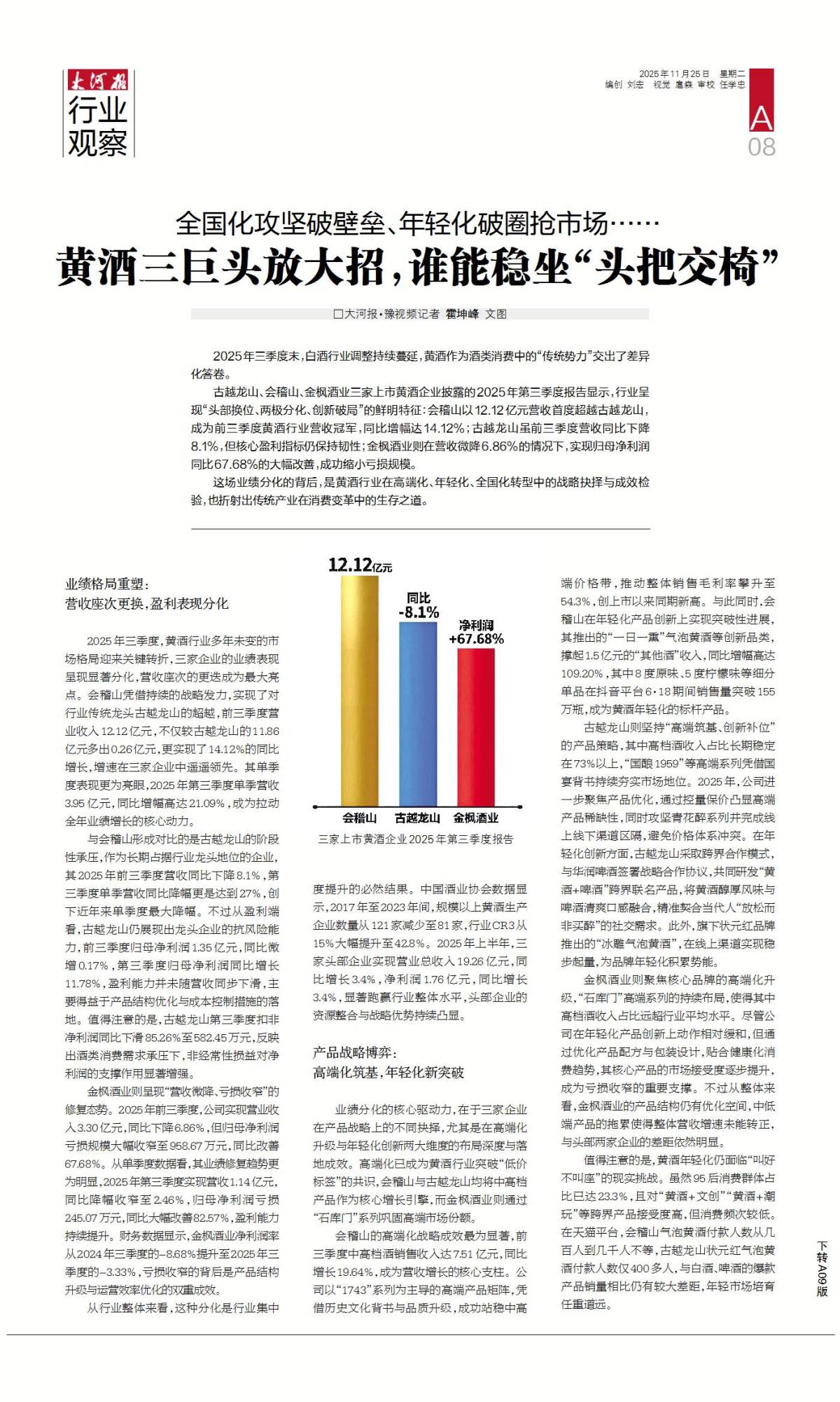 这场业绩分化的背后,是黄酒行业在高端化、年轻化、全国化转型中的战略抉择与成效检验,也折射出传统产业在消费变革中的生存之道。