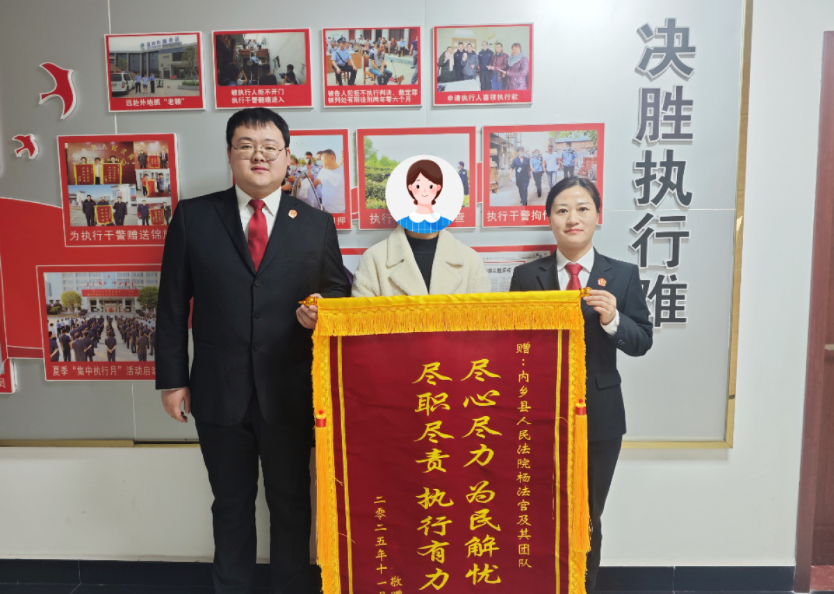 一面锦旗,不仅是申请人对执行法官工作的高度认可,更是对法院执行工作的充分肯定。近年来,内乡法院始终坚持以人民为中心的发展思想,聚焦群众“急难愁盼”问题,不断加大执行力度、创新执行方法,通过线上线下联动、精准采取执行措施、耐心细致做当事人工作等方式,全力破解执行难题,切实维护了当事人的合法权益,让人民群众在每一个司法案件中都感受到公平正义与司法温度。