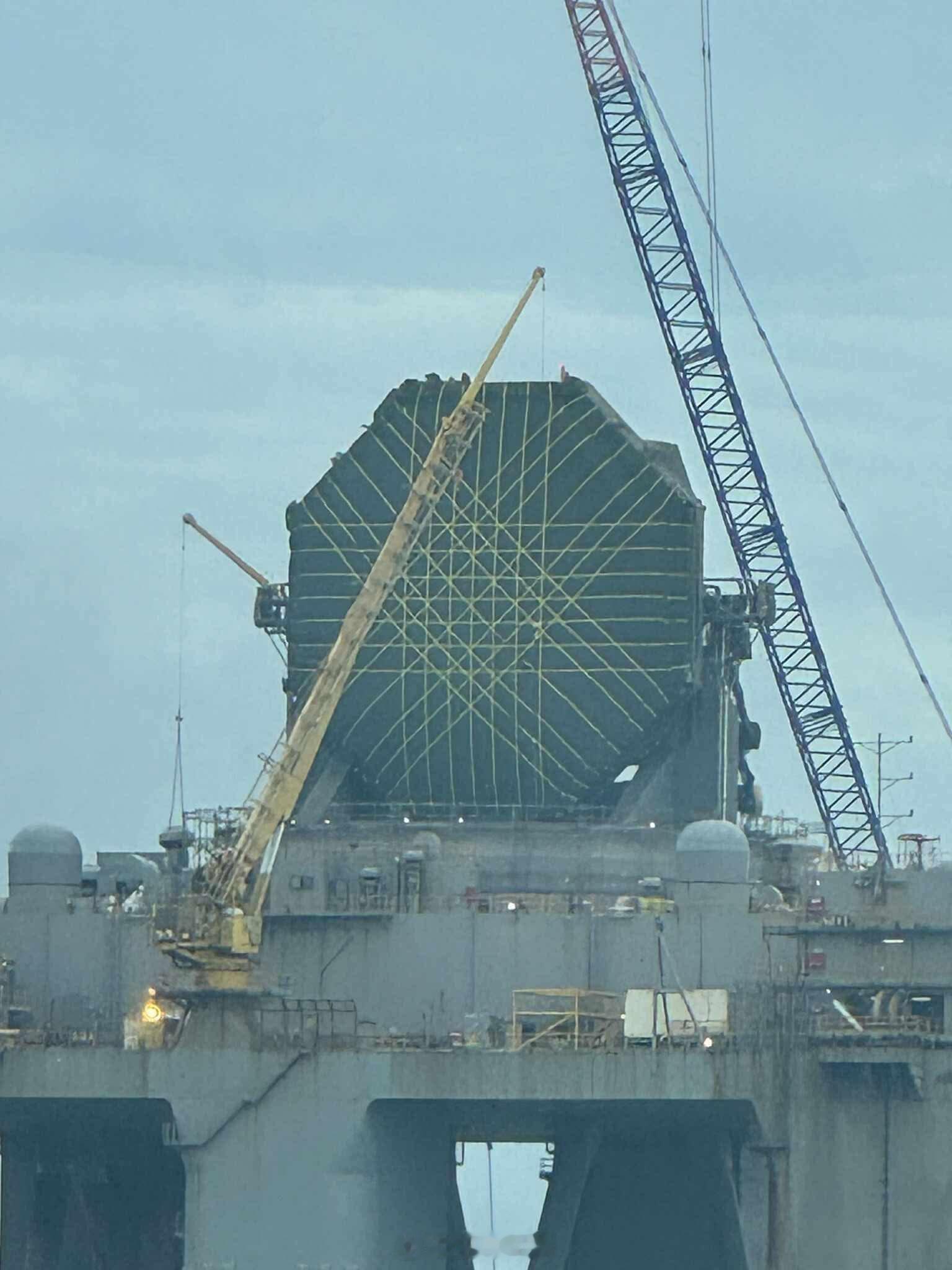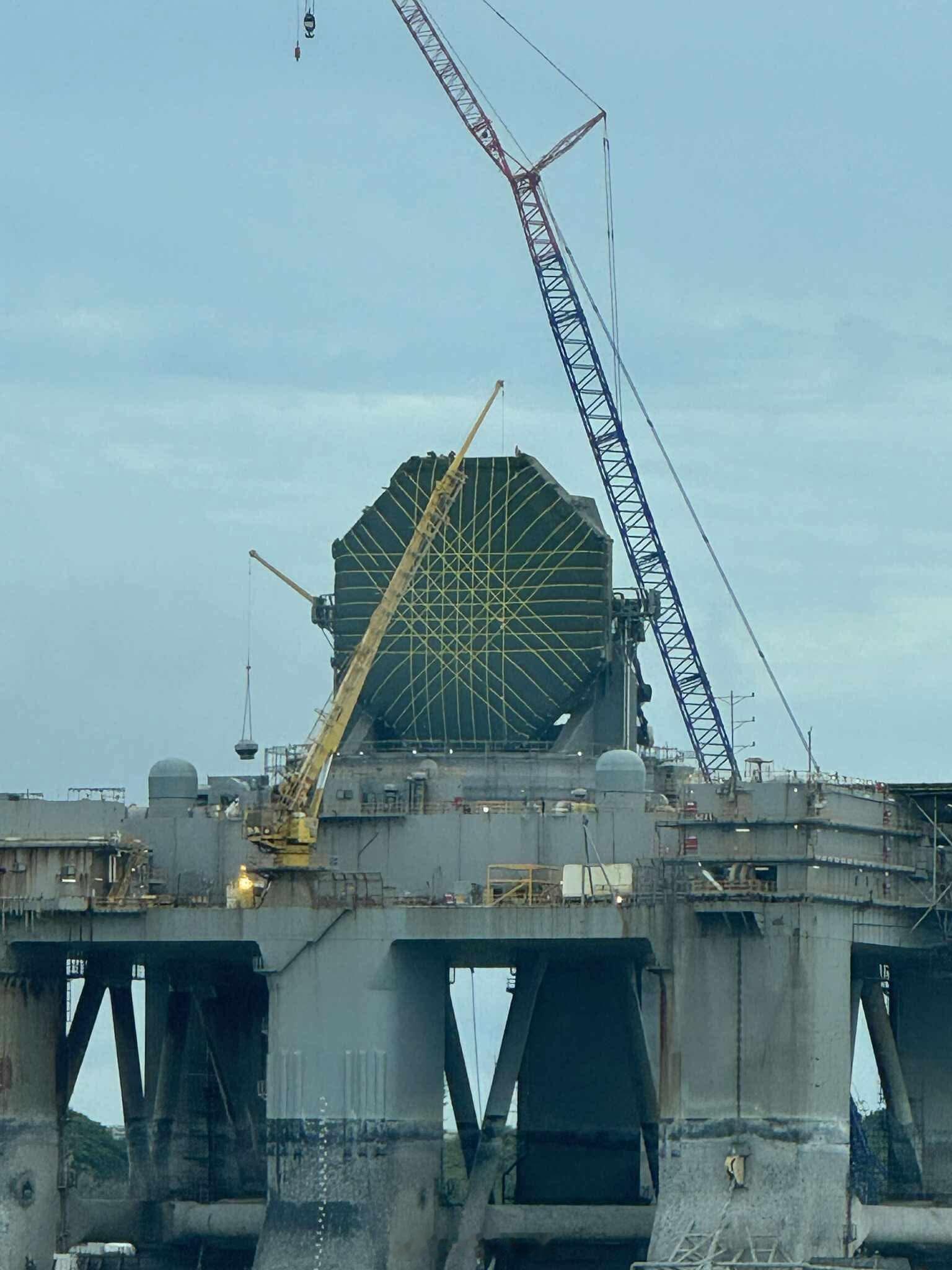 2025 年 11 月 20 日,美国对位于夏威夷珍珠港的海基 X 波段雷达(SBX-1)预警雷达站,雷达阵列外露部分进行维护