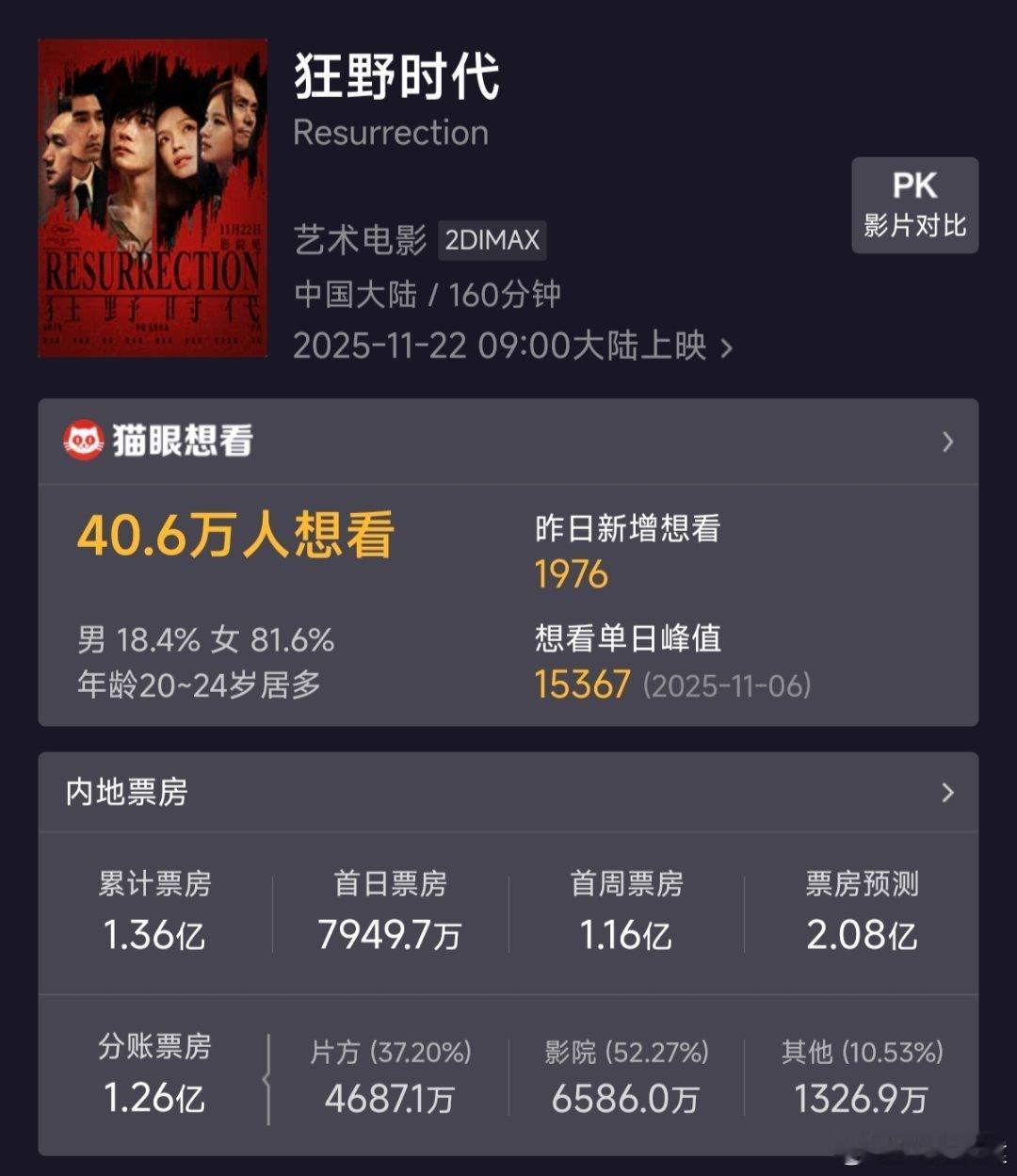 同为文艺片,狂野时代目前票房1.36亿元,你们觉得最终票房会超过河边的错误吗?