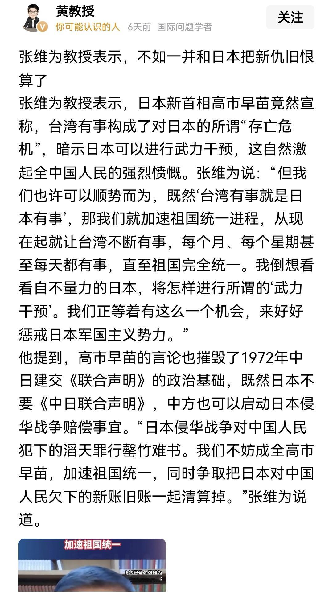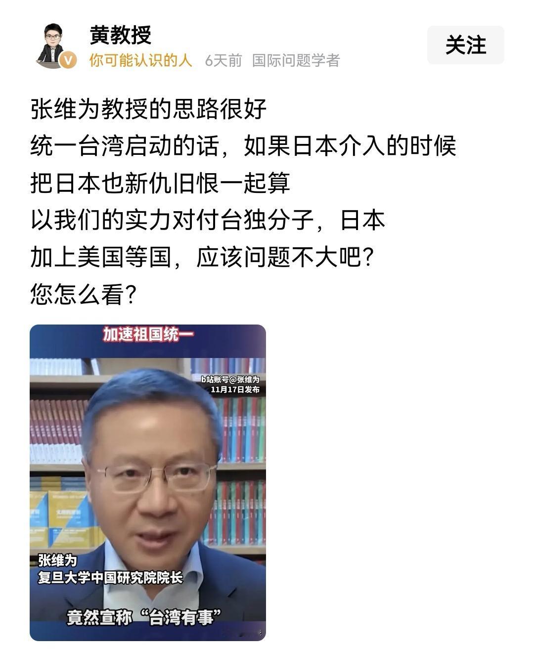 这个网友的建议,比两个教授的建议强一百倍,拿下钓鱼岛,没有抵抗力量,却能引蛇出洞,直接干掉日本自卫队。台湾问题自然也就解决了。而要是攻打台湾,会遇到顽强抵抗,多少都会死几个人,还要浪费不少的炮弹。打钓鱼岛,只有一个敌人,打台湾却会遇到两个敌人,这教授们的脑子怎么想的?#热点观点# #中日关系# #高市早苗# #抗日战争#