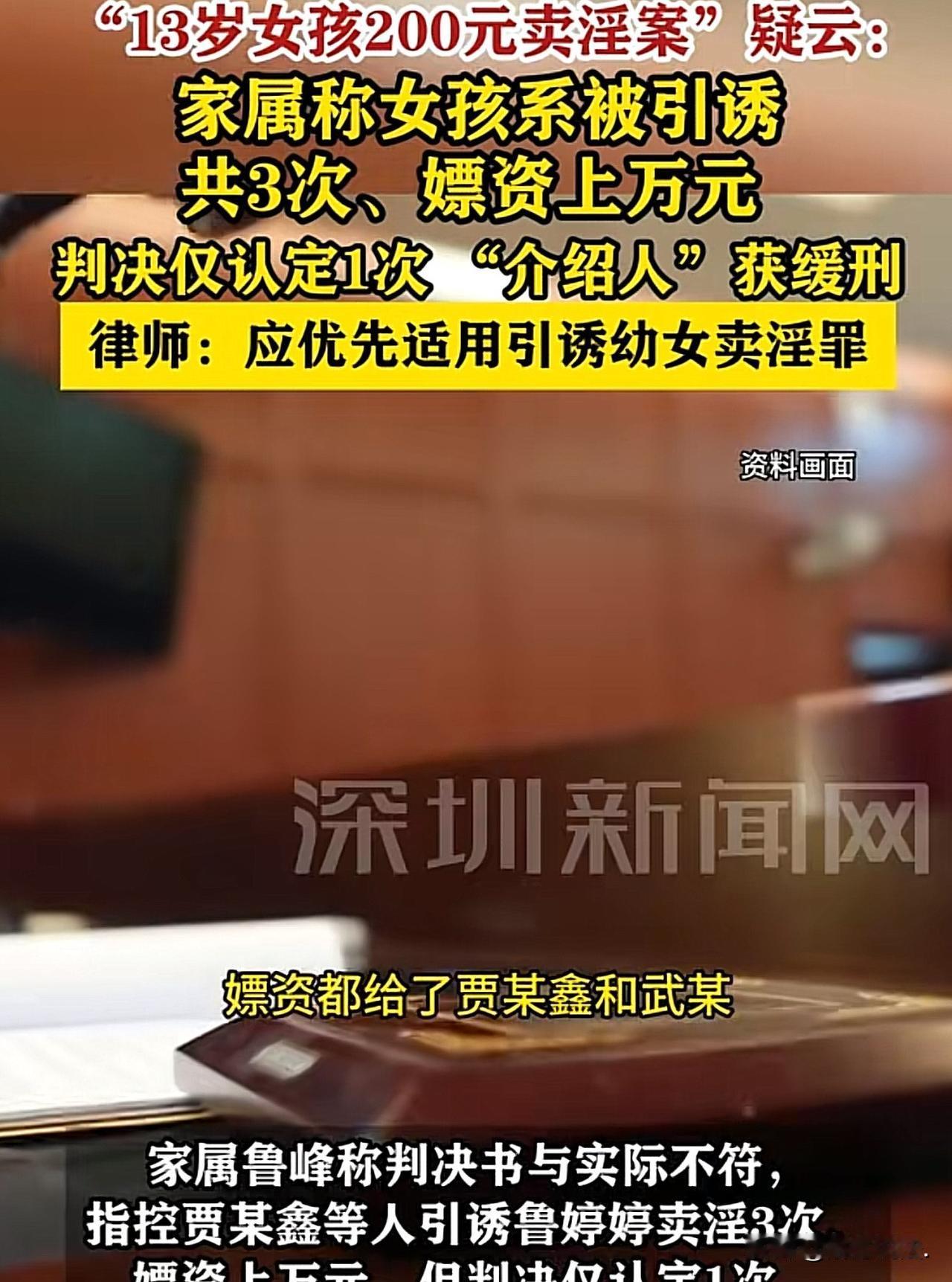 临沂,13岁的女孩被人诱骗去卖淫,还让女孩谎称自己18岁。被女孩叔叔知道后,直接报了警,结果,诱骗者只判处了8个月有期徒刑,还缓刑一年执行。其叔叔不服,决定申诉,可民警说那女孩是卖淫女,没有权利,同时,女孩叔叔不是监护人,也无权申诉。女孩叔叔为给侄女伸张正义,申请了监护人,可民警又说已经过了时效期! 2010年的寒冬,一对陌生男女把一女婴交到鲁家老两口手里,丢下一句“麻烦帮忙照看”,就头也不回的离开了。 老两口看着怀里皱巴巴的小生命,心一下子软了,四处打听孩子亲生父母的下落,却连半点线索都没摸到。 没办法,老两口给孩子取名鲁婷婷,当成亲孙女拉扯长大。 鲁婷婷的叔叔鲁先生常年在外打工,家里就靠年迈的爷爷奶奶照管。 小姑娘从小话不多,性子也有些孤僻。 2023年,13岁的鲁婷婷从村里小学升到镇上初中,可刚读了两个多月,就死活不肯去学校了,说“读书没意思”。 老两口拿她没办法,只能任由她在家待着。 年底鲁先生回家过年,一进门没看见鲁婷婷,心里咯噔一下。 追问之下,老两口才慌慌张张地说:都快两个星期没见着人了,还以为在哪个同学家玩呢! 鲁先生瞬间急了,连夜跑到婷婷要好的朋友赵欢家打听。赵欢支支吾吾地说:好像是武某把她带走了,说要带她去城里挣钱…… 鲁先生一听就炸了。 武某在村里名声极差,好吃懒做不说,她男朋友贾某更是游手好闲,专干些偷鸡摸狗的勾当。 他不敢耽搁,四处打听线索,终于在县城一间昏暗的出租屋里找到了鲁婷婷。 看着侄女眼神躲闪、身上穿着不合身的衣服,出租屋里又脏又乱,鲁先生心里一沉,当即报了警。 面对民警的询问,22岁的贾某吓得浑身发抖,一五一十交代了实情。 原来,武某和贾某哄骗贾婷婷,说城里挣钱容易,不用上学也能过好日子,把她骗到KTV。 后来让她跟陌生男人发生关系,她一开始坚决不同意,可两人轮番给她洗脑,说“就一次,挣了钱给你买新衣服”,她拗不过就答应了。 第二次她还是不愿意,贾某却威胁说“已经跟人家约好了,不去就没好果子吃”,硬逼着她去了第三次。 第一次那个男人给了贾某一万多,只给贾婷婷几百块。 那个陌生男人后来还塞给她200元红包,贾某全程都在旁边盯着,让她跟对方说自己已经18岁了。 接下来的日子里,鲁先生每隔一段时间就给派出所打电话,追问案子进展,可每次得到的答复都是“还在处理中”。 直到2025年10月28日,鲁先生再次拨通电话,才得知案子早在9月23日就宣判了。 孟某被行政拘留,介绍的贾某判了有期徒刑八个月,缓刑一年。 鲁先生认识这个判决结果太轻了,侄女才13岁啊!未成年人被诱骗胁迫,就判个缓刑,鲁先当即要求上诉。 可工作人员却说他不是监护人,没权利上诉。另外鲁婷婷是卖淫方,也没有上诉权。 鲁先生不甘心,说要申请婷婷的监护权,以自己的名义申诉,对方又说:已经过了上诉期限了。 鲁先生越想越气愤,认为自己不打电话,还不知晓判决,民警不符合流程。 他找媒体求助,记者联系了法院工作人员,对方解释说:案卷材料显示只有一次卖淫行为,嫖资200元,而且鲁婷婷是自愿的,所以只能认定贾某是介绍人。 这话彻底激怒了鲁先生:“明明是三次!第一次嫖资就一万多!什么自愿?婷婷才13岁,被他们哄骗威胁,在陌生环境里她敢说不吗?贾某还教唆她伪造年龄,这就是故意欺骗! 鲁先生一气之下,联系媒体曝光此事。 记者与派出所相关负责人取得联系,对方说此案自己接手时已结,但“单次、200元”的材料并不属实,我们把所有调查内容都录入系统了,不可能没有记录。 显然派出所这边的说法和鲁先生的说法不一致,鲁先生想为侄女主持公道,接下来,只能走法律程序了。 《刑法》第359条第二款及相关司法解释,引诱不满十四周岁的幼女卖淫的,以引诱幼女卖淫罪定罪处罚。 鲁婷婷仅13岁,贾某哄骗、威胁其与他人发生关系,完全符合该罪构成要件,而非普通介绍卖淫罪。 二是根据该解释第八条、第九条,引诱未成年人卖淫或非法获利万元以上,均需从重考量,贾某首次非法获利超万元还存在胁迫行为,远不止普通介绍卖淫的情节。 《刑法》第246条,奸淫不满十四周岁幼女的,以强奸论,从重处罚。 另外,与鲁婷婷发生关系的孟某,因婷婷系幼女,其行为涉嫌强奸罪,而非仅行政拘留。 《刑事诉讼法》规定法院需将判决书送达被害人,且抗诉申请期限从被害人收到判决书起算。 本案中法院未主动告知鲁婷婷及监护人判决结果,导致其客观上无法及时行使权利,属于权利行使的正当障碍。 这种情况下,该期限不应计算,所谓“过了时效期”的说法不符合法律规定,鲁先生仍可依法向检察院申请抗诉。