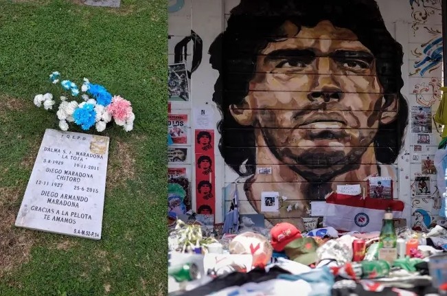 如今,马拉多纳长眠于布宜诺斯艾利斯贝拉维斯塔花园私人墓地,与他的父母朵娜·托塔和老迭戈相伴。在那里,一块简朴的墓碑守护着这位阿根廷球星的遗骸。由于一些不法分子企图盗窃,这块墓碑不得不频繁更换。无论他们是否得逞,都无法抹去他在全世界足球迷心中的记忆。