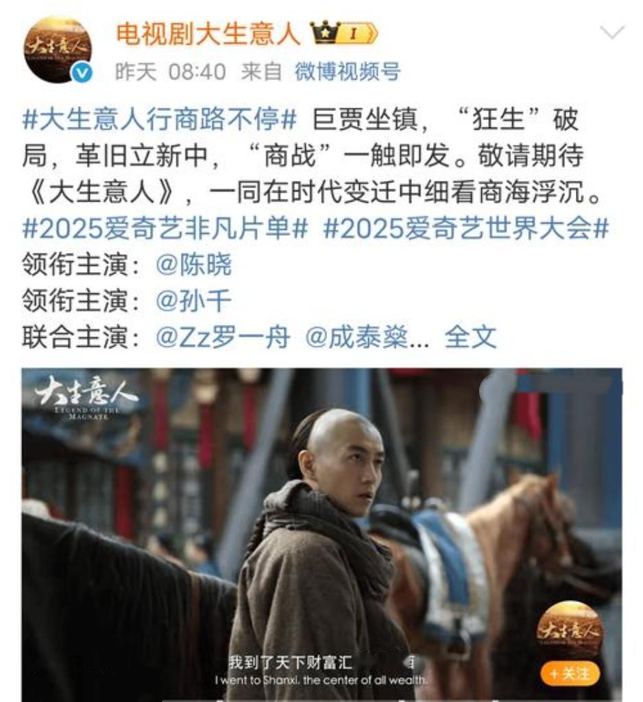 于正为陈晓新剧《大生意人》高调打call,一句“即使不再是同事,也依然是心里的家人”引爆回忆杀!陈晓为角色减重15斤、留三年长发,敬业程度拉满。你期待这对昔日搭档的“破冰”互动吗?快来评论区聊聊!陈晓微表情