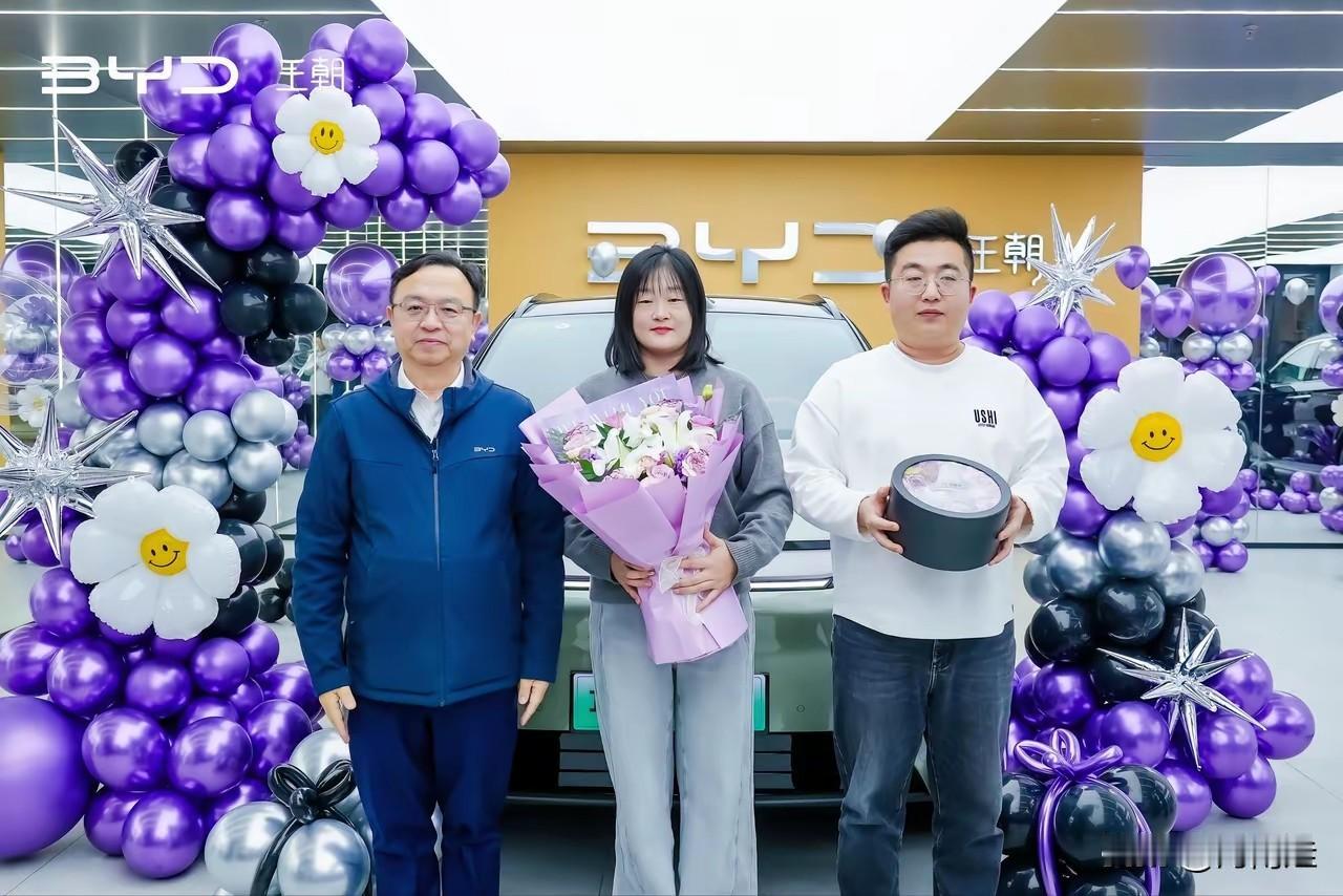 比亚迪总裁真够忙的,逛完广州车展以后,又马不停蹄的前往比亚迪4S店给车主交车。身