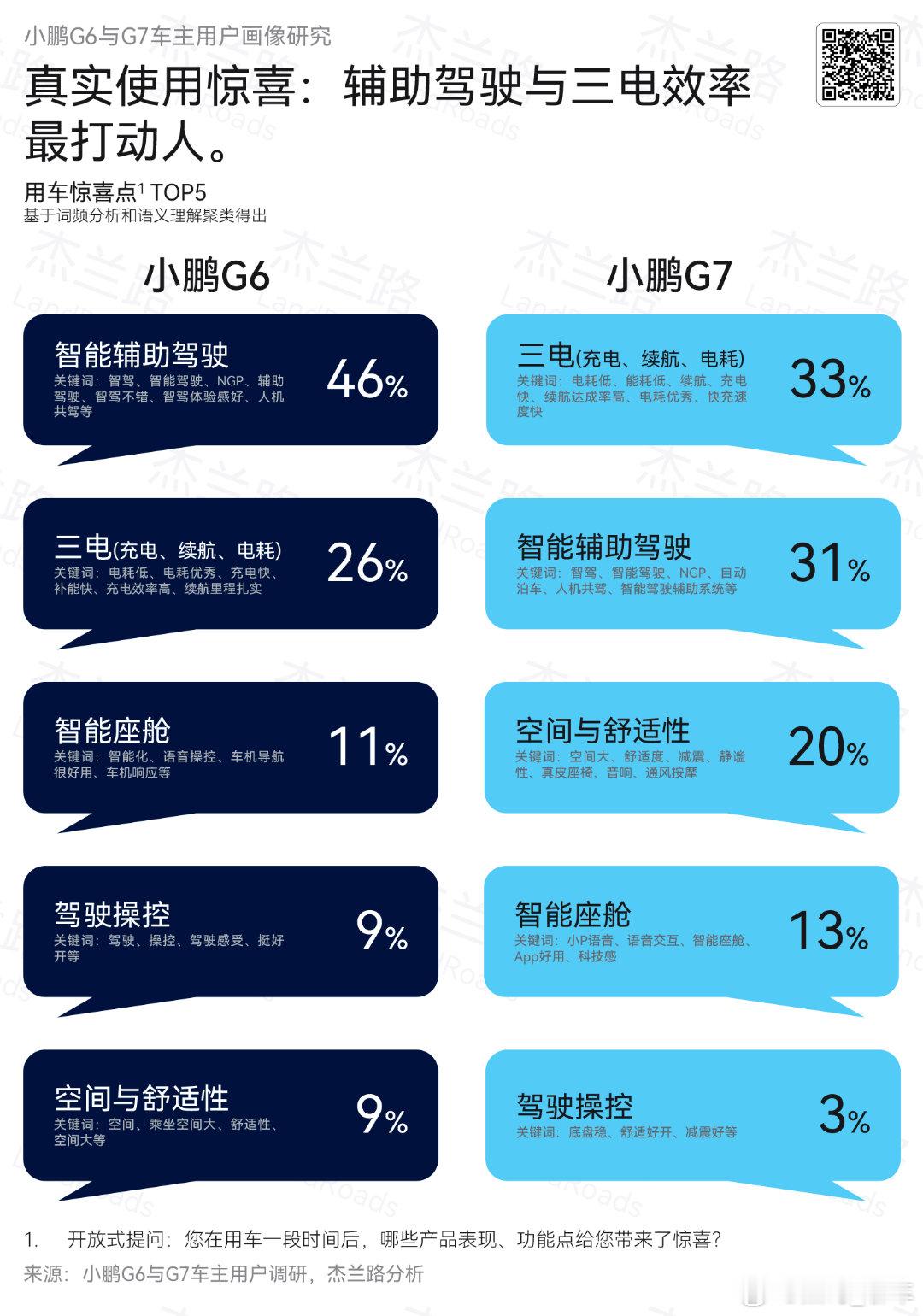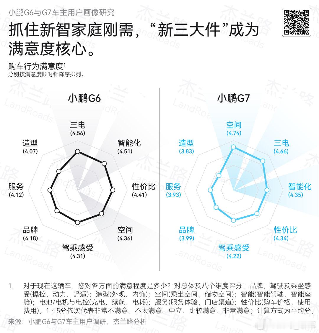 《杰兰路》调研:“新智家庭”成购车主力,“智能驾驶+三电+大空间”为核心标准。小鹏G7/G6凭高满意度卖点,Q3 15-25万纯电SUV销量居五/六位,智配指数超94%。