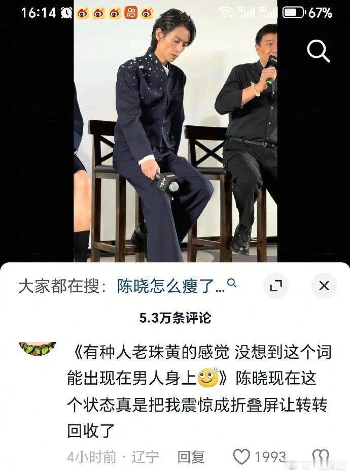 看到陈晓瘦成这样,我比吃了苍蝇还难受,昨天陈晓出席《大生意人》的发布会现