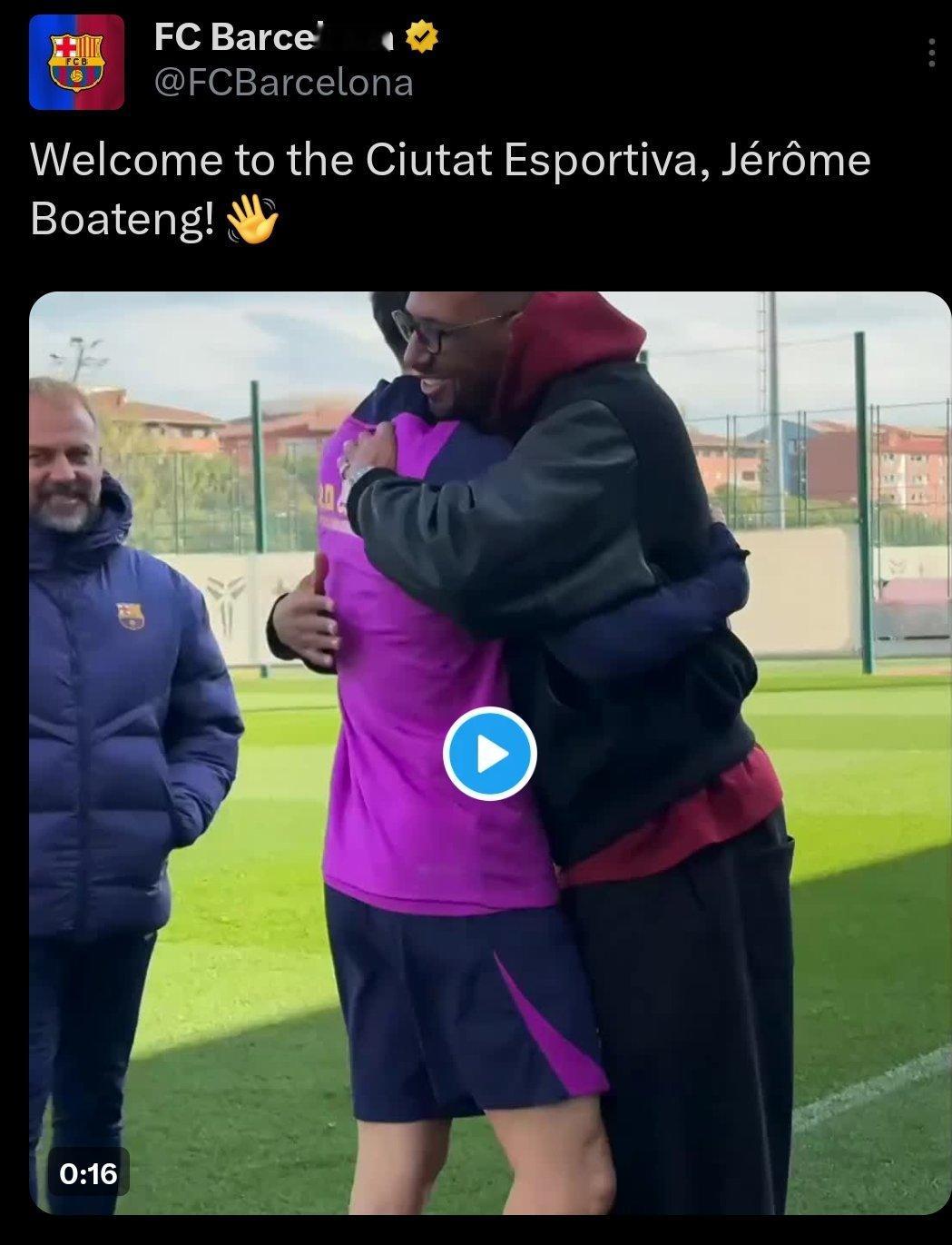 巴萨官推:今天,11月25日,我们共同谴责一切形式的暴力侵害女性行为。巴塞罗那足球俱乐部重申我们对平等、尊重和维护所有人尊严的承诺。然而着遭到了球迷的抨击,此前博阿滕来到甘伯城时巴萨官推表示欢迎,而博阿滕就是一个家暴男。