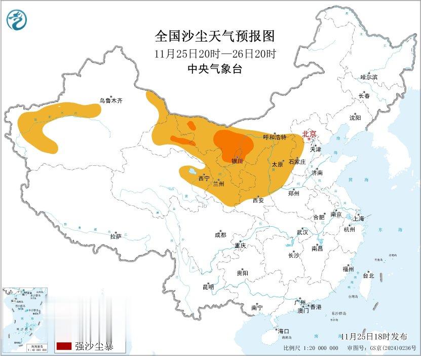 图2全国沙尘天气预报图(11月25日20时-26日20时)