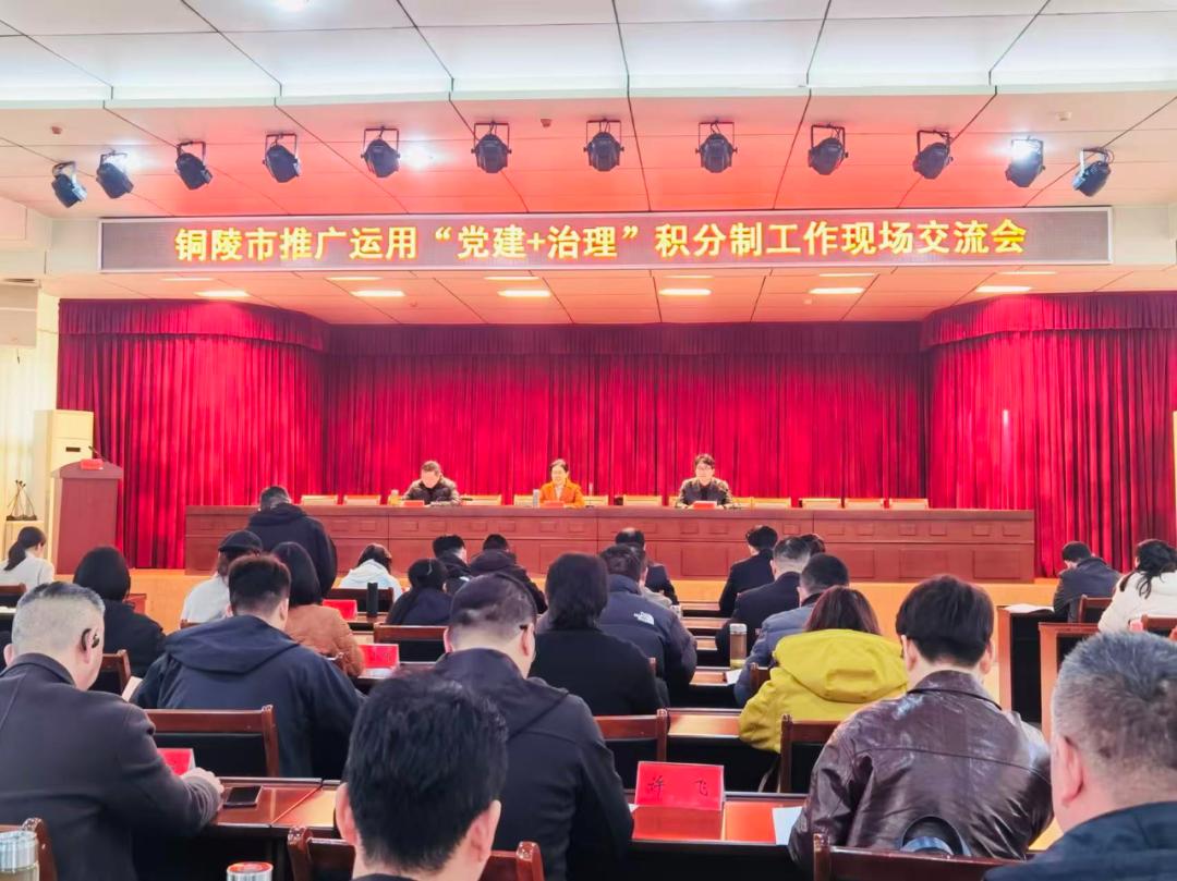 安徽网铜陵消息近日,铜陵市委组织部、社会工作部在枞阳县召开推广运用“党建+治理”积分制工作现场交流会,市委社会工作部副部长邹敏出席会议并讲话。各县区委组织部、社会工作部负责同志和部分乡镇(办)、村(社区)负责同志70余人参加会议。