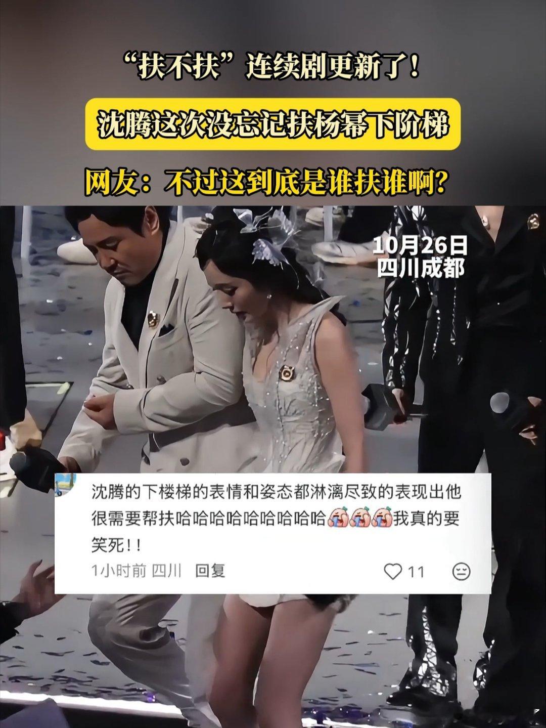迪丽热巴未走台阶直接跨下舞台,陈星旭随即伸手搀扶其手臂确保安全。好熟悉的画面,记得哪位大佬表演了一个扶不扶?