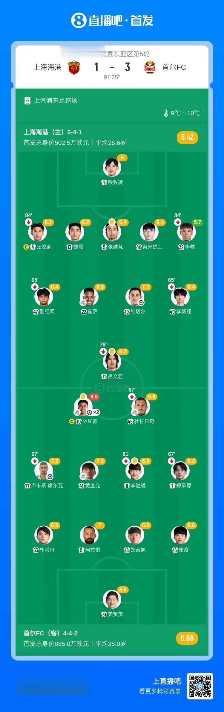 直播吧11月25日讯北京时间18:00,亚冠精英联赛东亚区第5轮上海海港vs首尔FC,比赛在上汽浦东足球场打响!上半场,蒯纪闻送直塞,李新翔错失良机!下半场,杜甘日奇助攻林加德打破僵局,维塔尔破门扳平比分;随后林加德再送助攻,卢卡斯·席尔瓦帮助首尔FC再次领先!林加德再进一球完成双响,本场2射1传。最终,上海海港1-3不敌首尔FC,遭遇亚冠三连败,跨赛季亚冠10场不胜!