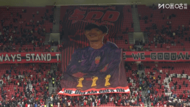 赛前,海港球迷在看台打出巨型TIFO,致敬颜骏凌500场↓