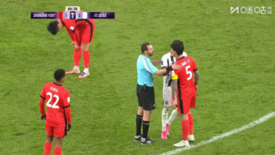 第30分钟,首尔FC门将姜贤茂大脚开球,吕文君积极逼抢,撞翻了姜贤茂!主裁判给了吕文君一张黄牌↓