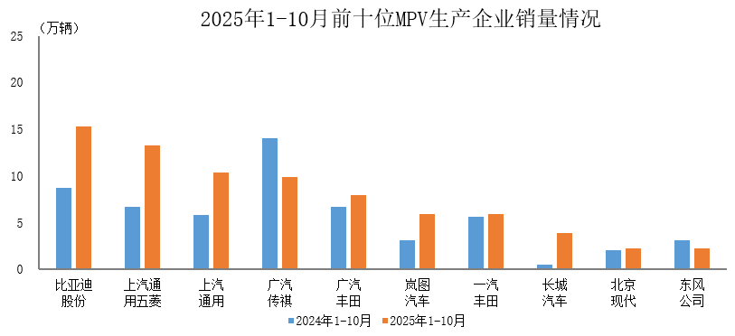 据中国汽车工业协会统计分析,1-10月,销量排名前十位的MPV生产企业共销售77万辆,占MPV销售总量的77.9%。