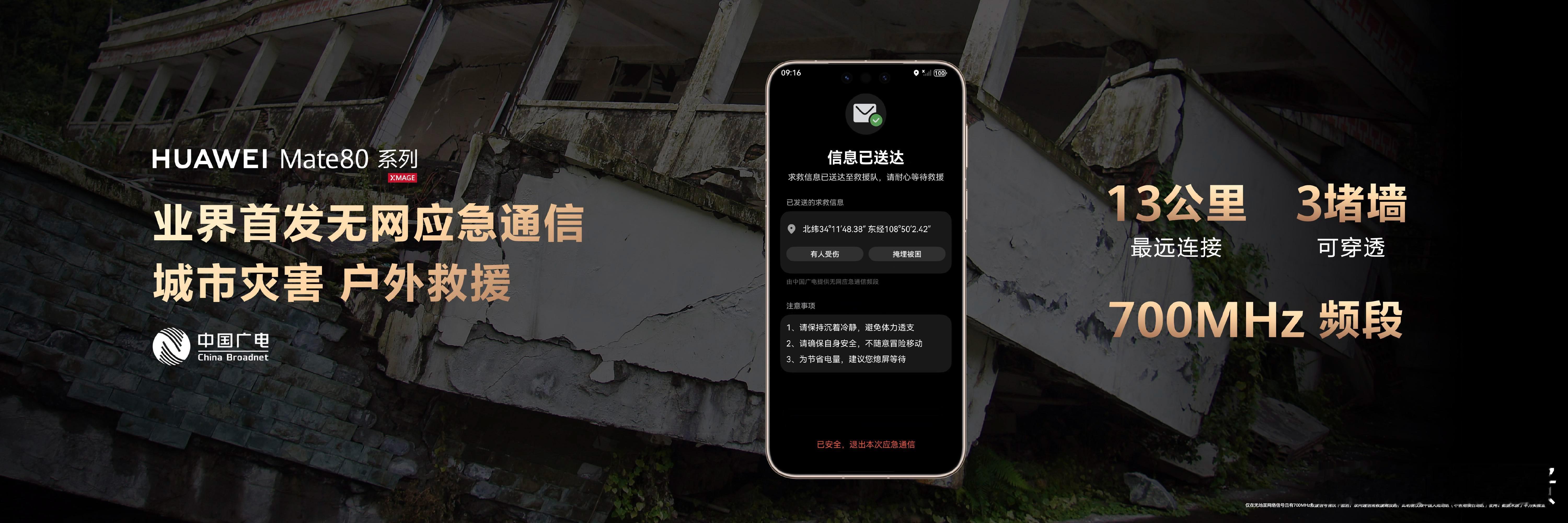 华为官宣 ,该功能为业界首发700MHz无网通信,在地震、洪水或是野外失联等断网险情下搭建生命通道,打通用户与救援队最后一公里的沟通链路。700MHz应急频段救援信号,可以穿透3层楼的深度,覆盖超过13公里的通信距离。