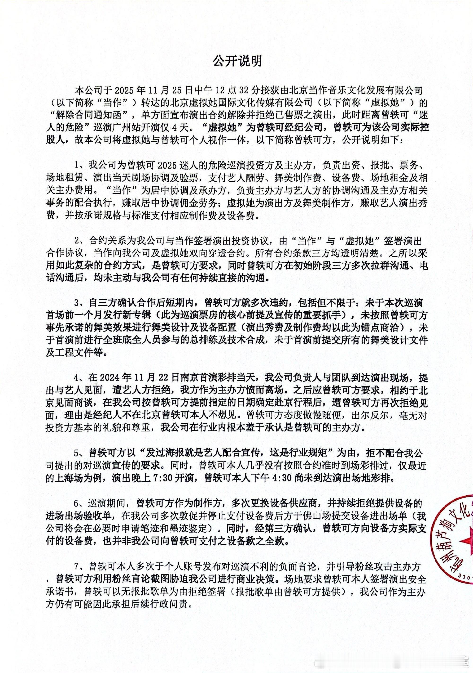 曾轶可这场巡演的纠纷真的越闹越热闹,25日双方接连发声明互撕也太抓马了。