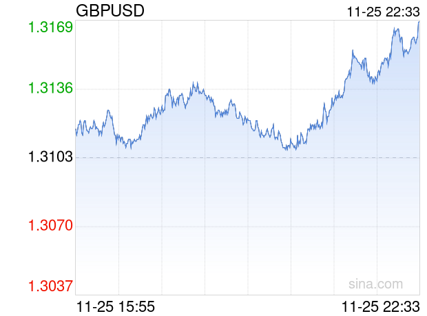 新浪外汇消息2025年11月25日,截至22时33分,外汇市场上英镑兑美元汇率突破1英镑兑换1.3171美元。涨幅为0.5190%