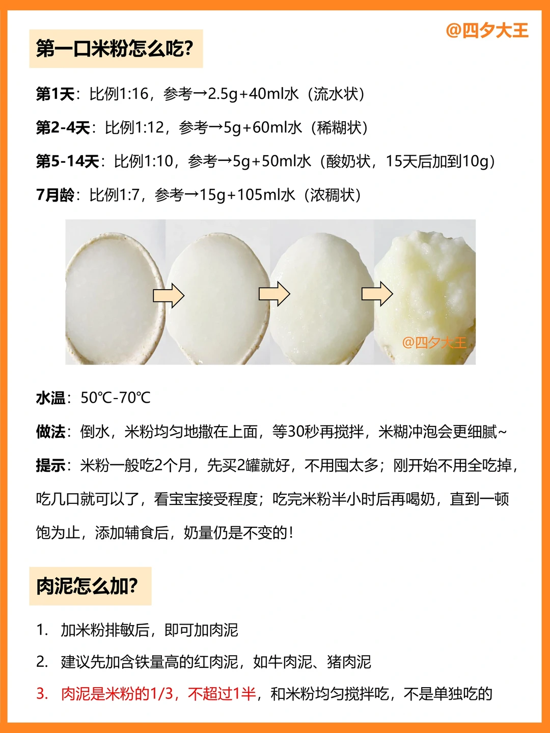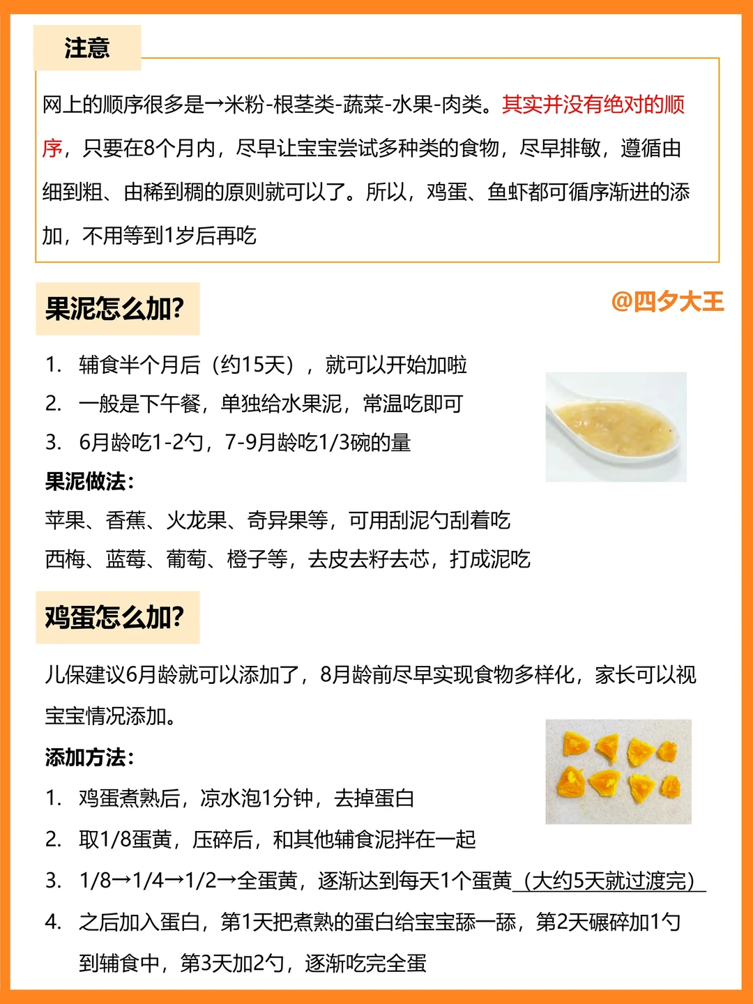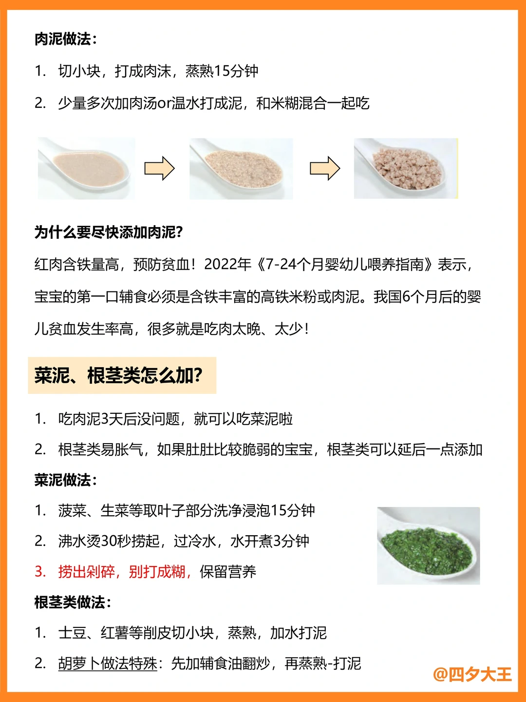 ⚠️注意:添加时间一般不早于4个月,不晚于6个月。太早可能会让肚肚有负担,太晚又错过营养补充的好时机。所以,一定要把握好黄金窗口期!