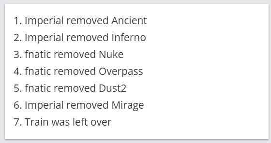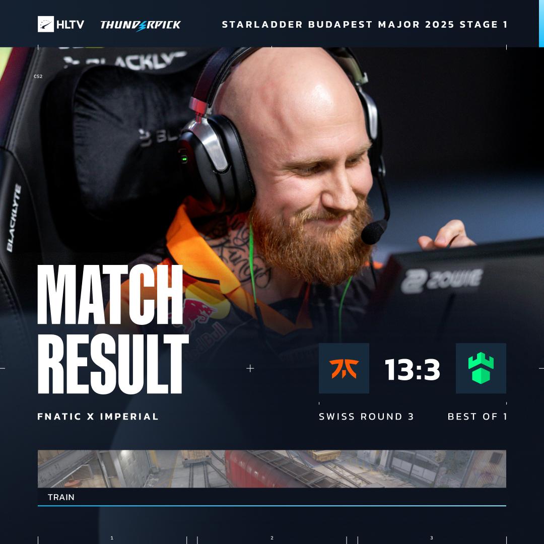 下半场fnatic延续上半场的巨大优势最终以13-3的比分轻取Imperial进入2-1组