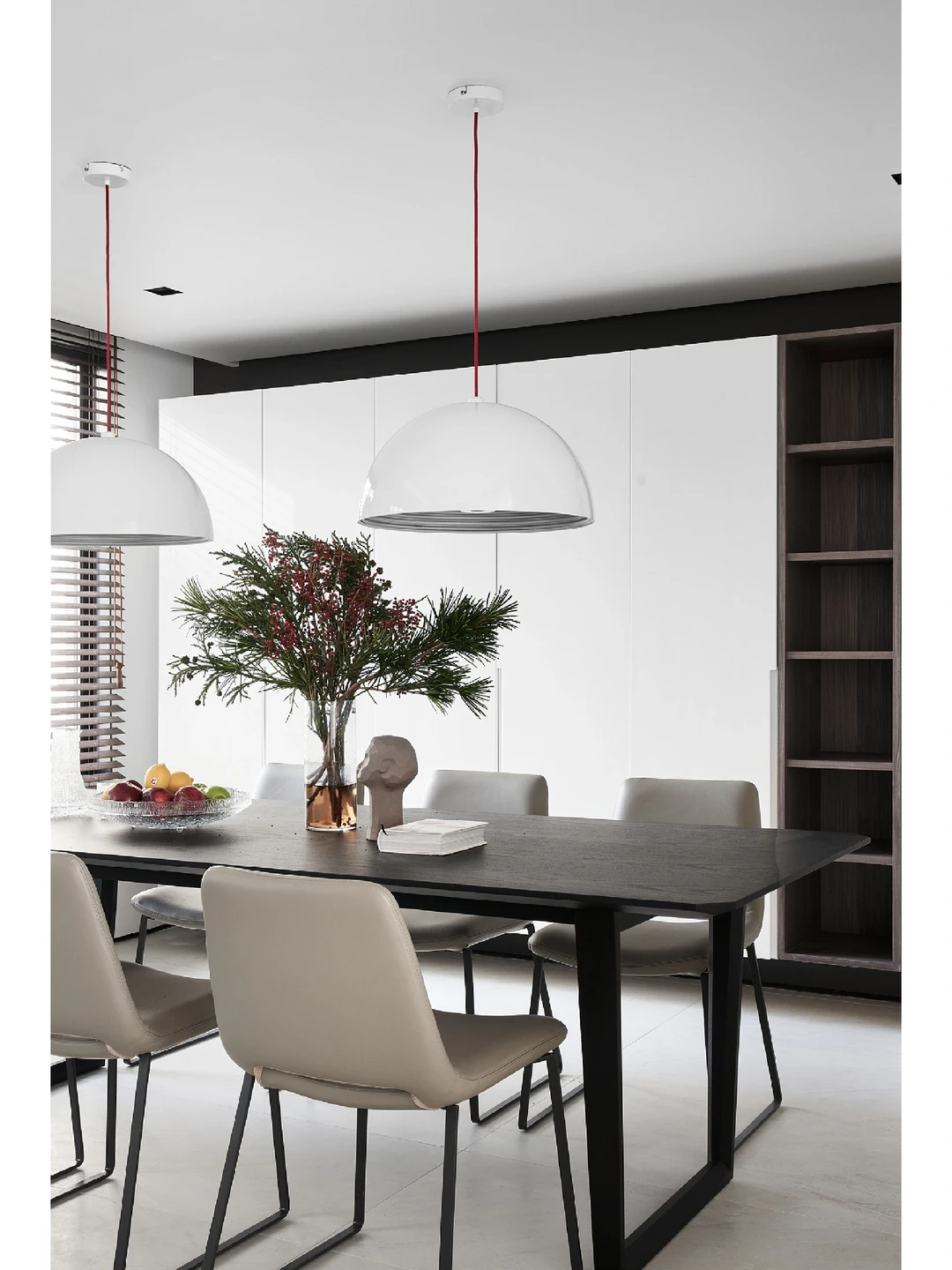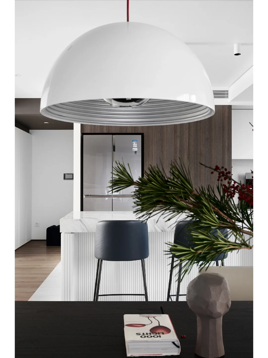 ⭐全屋设计进行完美贯穿,将深灰橡与白色作为视觉主色,餐桌吧台错落有致,冷暖平衡之下散发出轻奢舒适的餐厅气质。在细节的脉络中,谱写出令人身心倍感愉悦的把酒言欢之所。