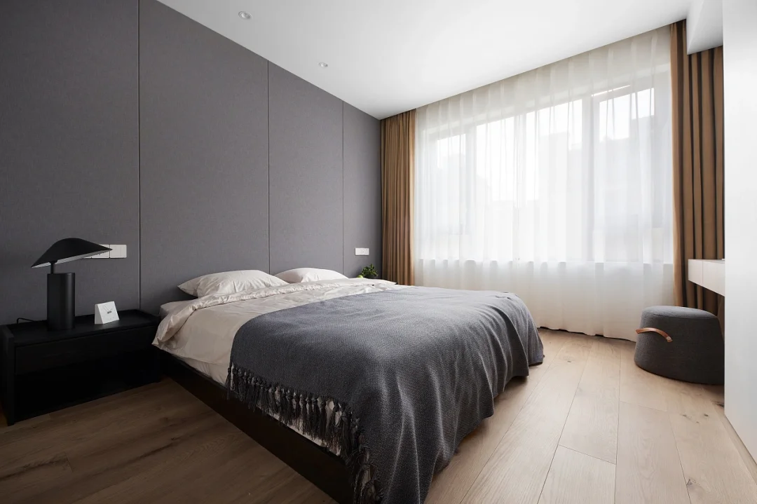 ⭐主卧墙板采用深灰色,整体视觉效果轻盈有序,不带任何停滞感的流畅动线,让居者的生活更便捷,打造出自在无压的生活空间,呈现出内敛低调的清雅氛围。