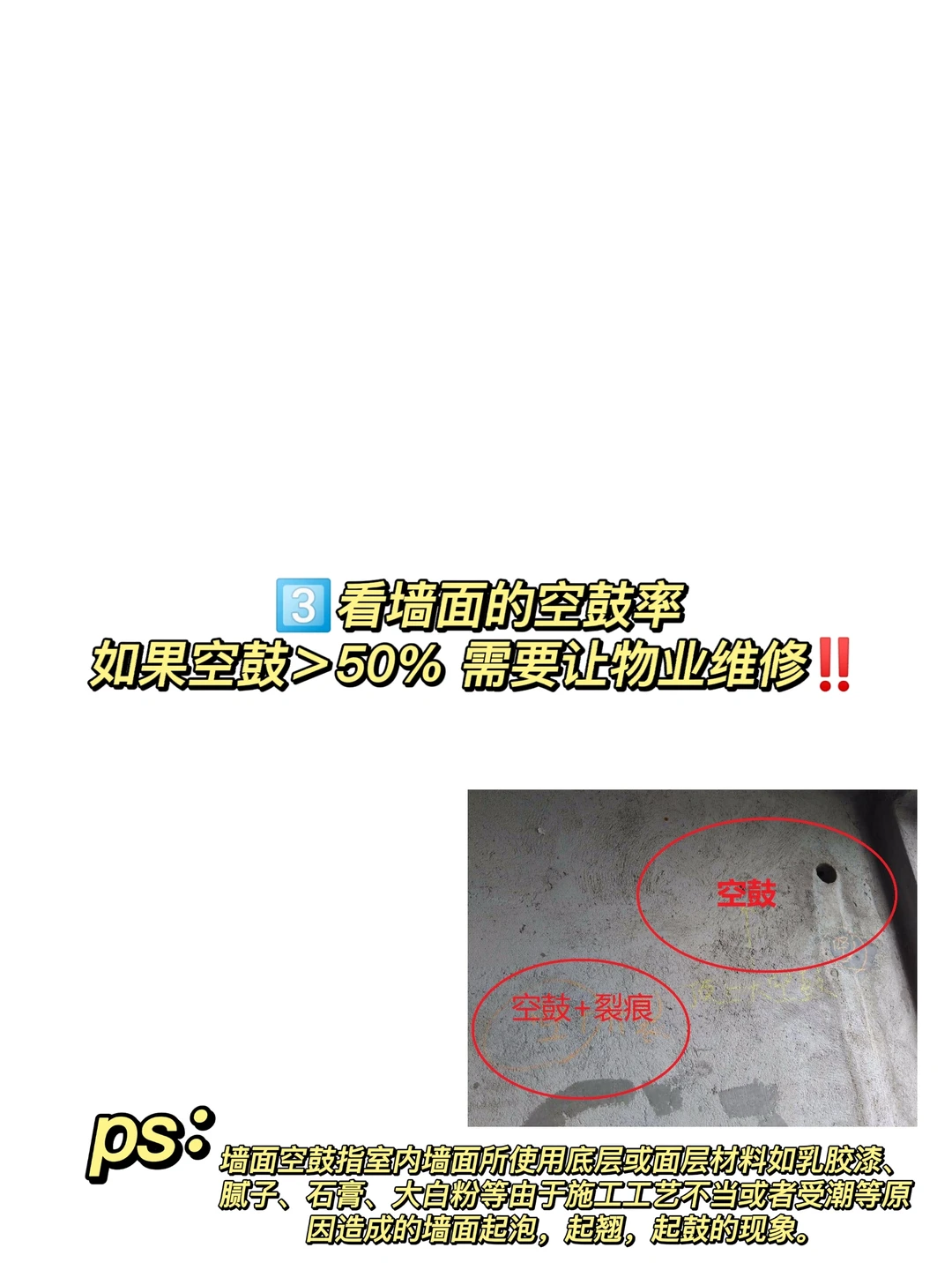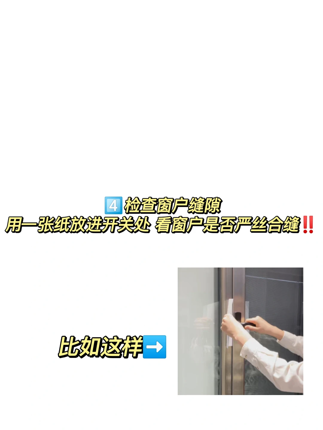毛坯房验房一定要看这四点!!! 1⃣️检查门锁是否能正常开启,再检查合叶是否有异响! 2⃣️看所有的开关能不能正常使用、顺畅不顺畅,再看所有的插座是否能通电! 3⃣️看墙面的空鼓率,如果空鼓大于50%,需要让物业进行维修! 4⃣️检查窗户缝隙,用一张纸放进开关处,看窗户是否严丝合缝! 千万要仔细检查哦[派对R][派对R]