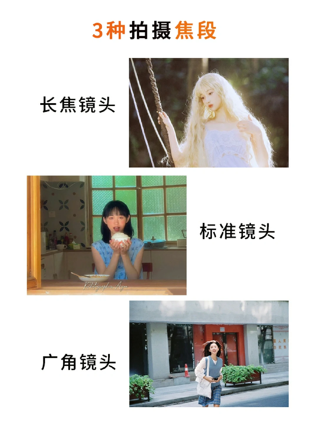 4️⃣焦段:广角例如35mm/标准例如50mm/长焦例如85mm