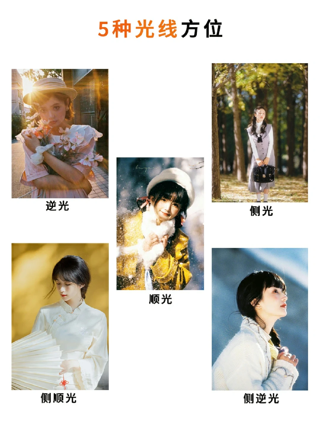 5️⃣光线:顺光/侧顺光/侧光/侧逆光/逆光