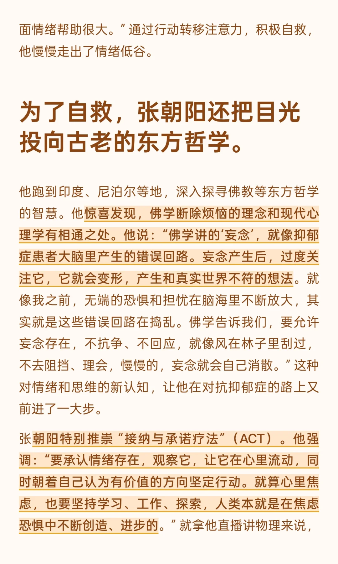 他不依赖药物,而是通过研究物理、探索佛教等方法转移注意力,最终成功战胜焦虑。