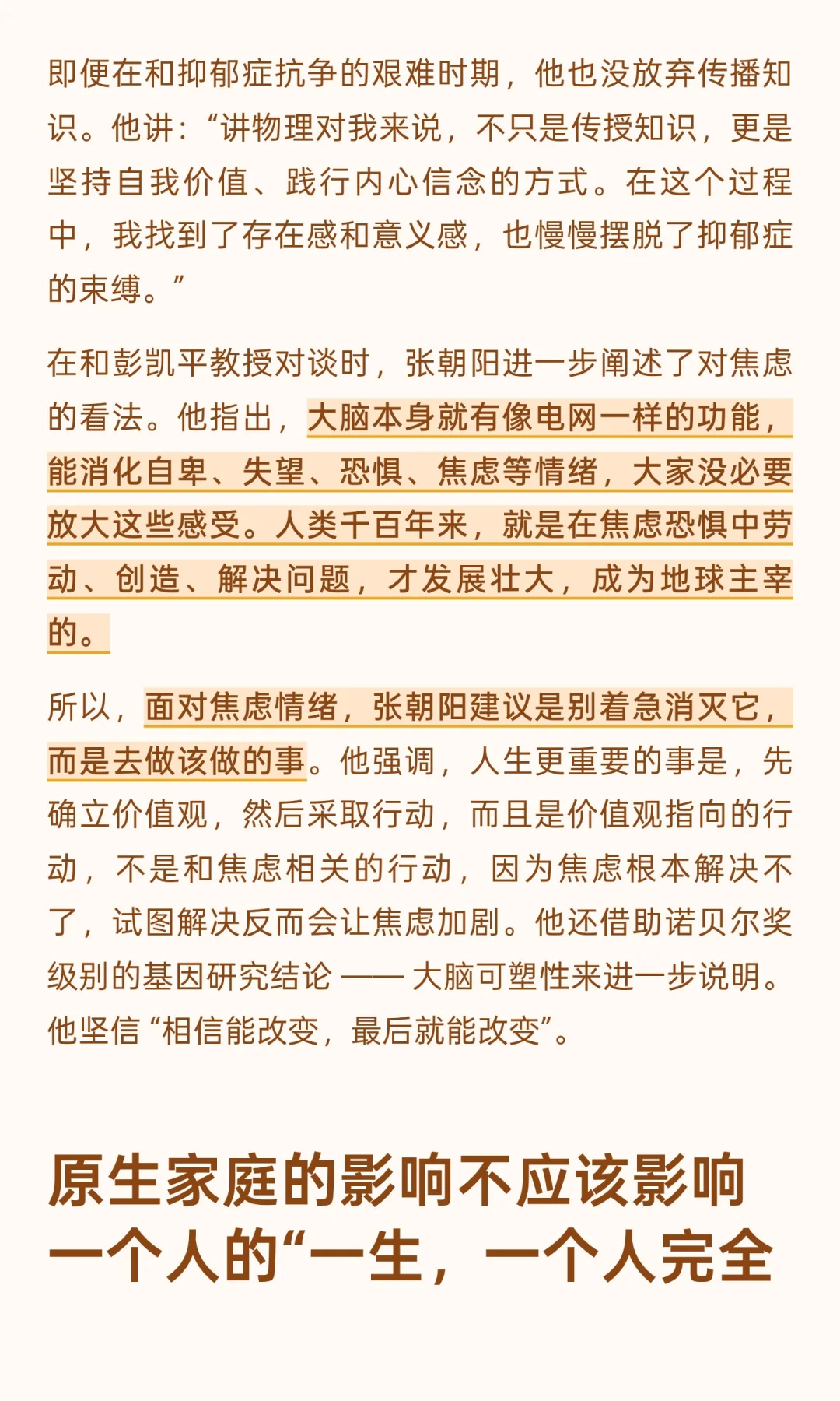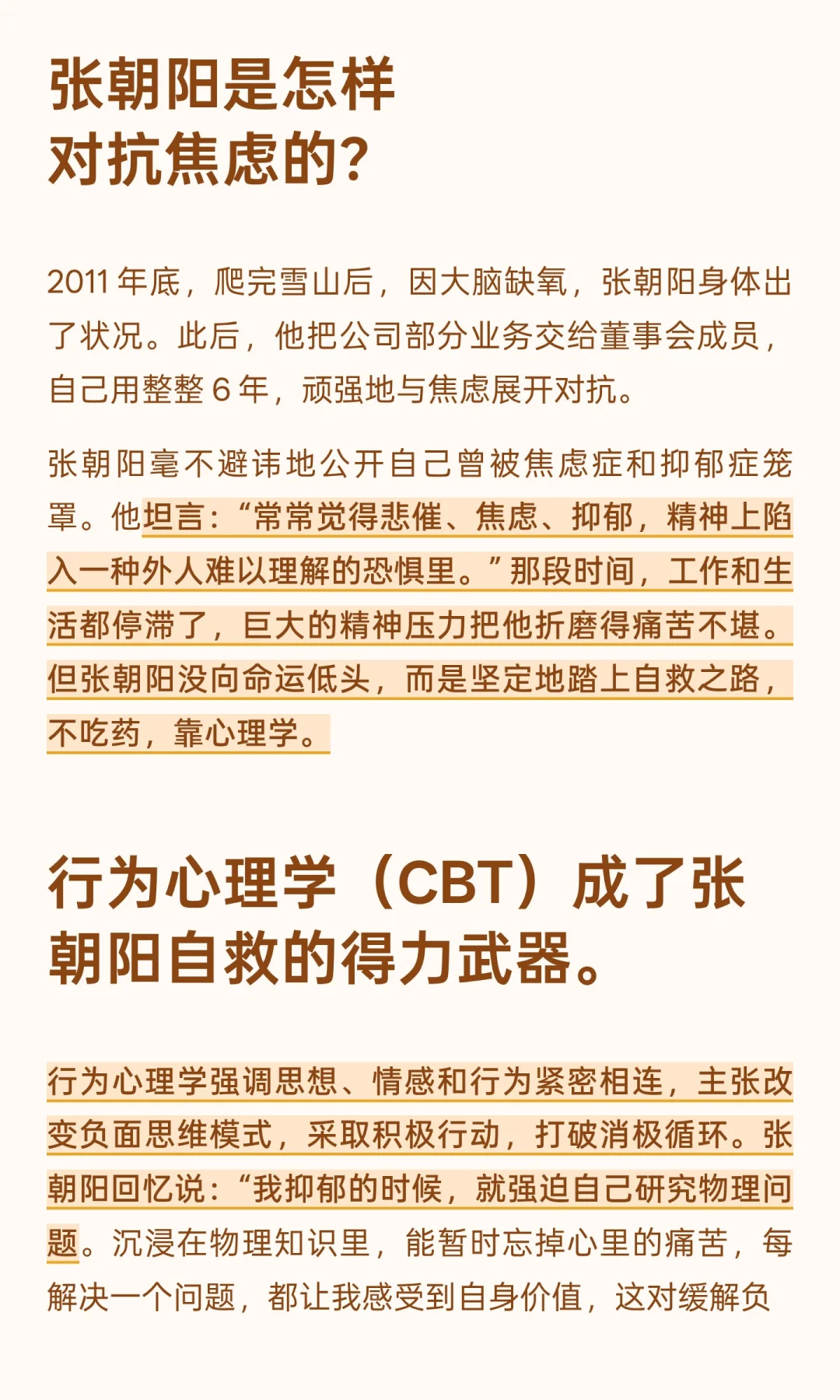 张朝阳通过行为心理学和东方哲学对抗焦虑,强调确立价值观并坚持行动。