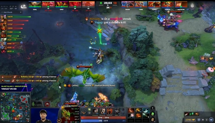 [28分钟]OG捉到zeal半人马,击杀半人马和双辅助后,OG控下二代肉山,Natsumi玛西再度带盾。
