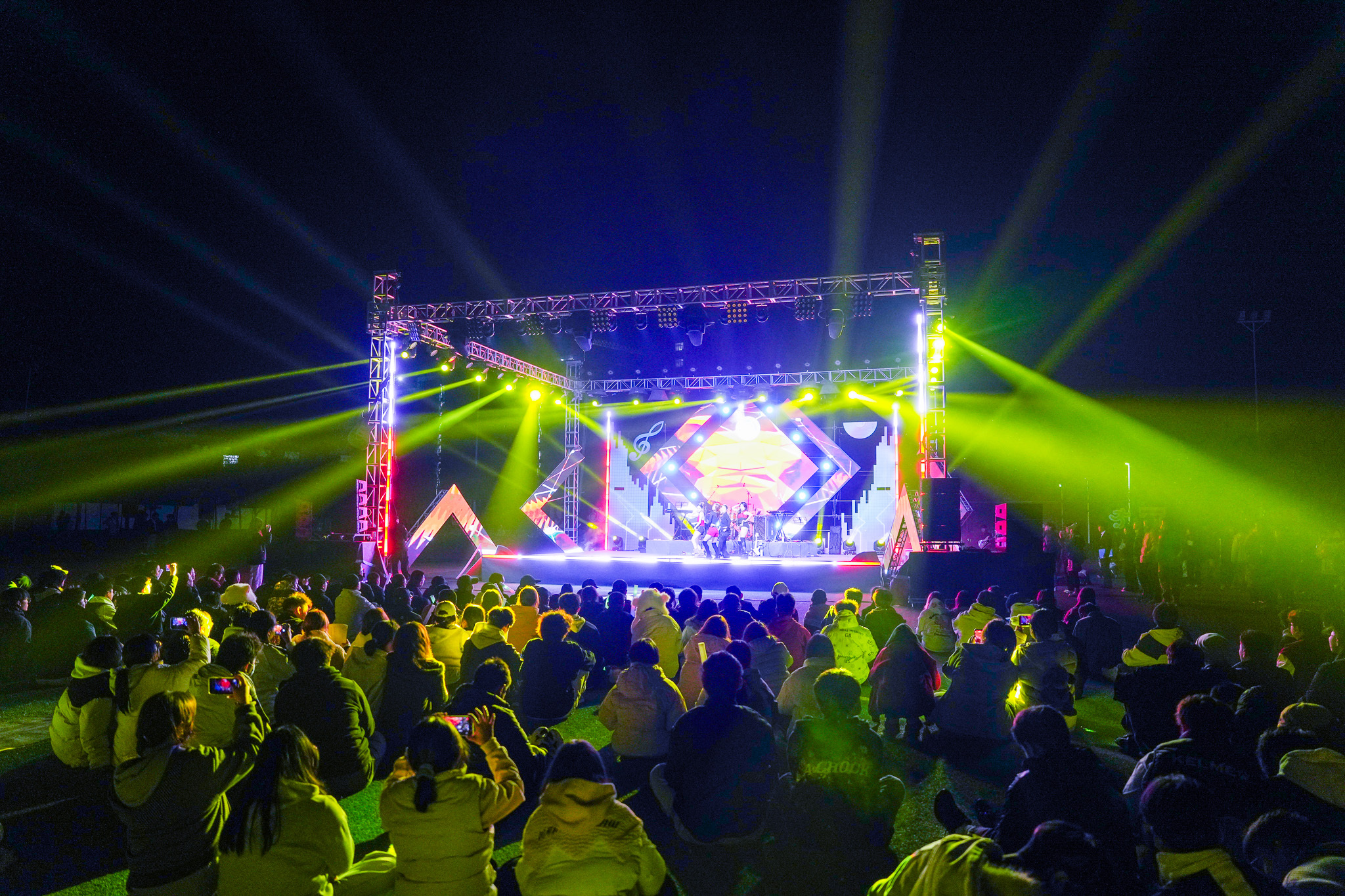 璀璨灯光点亮夜空,青春旋律响彻校园。11月25日晚,由共青团云南机电职业技术学院委员会主办、绿色能源学院团总支承办的“绿野赫兹”音乐节在学校操场震撼上演。初冬的寒意挡不住学子们的热情,数千名师生齐聚草坪,共赴这场视听盛宴。