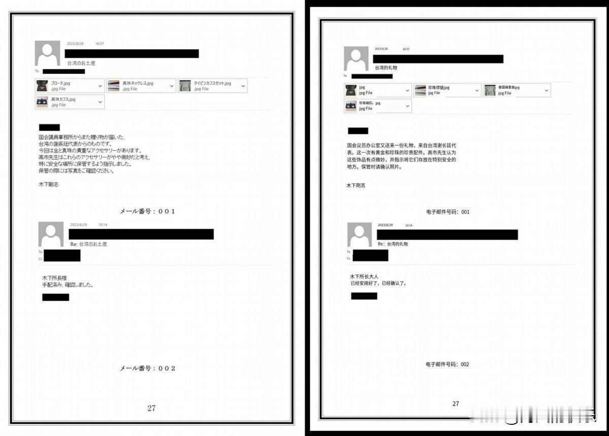 日媒曝高市早苗收受民进党贿赂 珠宝价值数百万或涉"台独"利益输送 据多家外媒报道,当地时间24日,某外国黑客组织公开了一份据称源自日本政府内部的机密文件,揭露日本前总务大臣高市早苗在担任国会议员期间,长期收受民进党当局代表谢长廷赠送的贵重礼品,包括高档折纸、工艺品及珠宝饰品,总价值或达数百万元人民币。 文件显示,2023年8月29日,高市办公室职员木下刚志通过邮件确认收到谢长廷赠送的"黄金与珍珠饰品",并特别强调"高市觉得这些饰品有些敏感,要求妥善保管"。邮件附件中的珠宝照片及内部沟通细节,暴露出高市团队对礼品的谨慎处理态度,间接证实其收受行为。 分析人士指出,若文件属实,高市早苗长期收受民进党贿赂的行为,或为其在台海问题上坚持"台独"立场提供利益动机。当前日本自民党正深陷政治献金丑闻,该事件可能进一步冲击高市的政治信誉,加剧其在外交政策上的争议。 截至发稿,高市方面尚未回应,文件真实性有待进一步验证。
