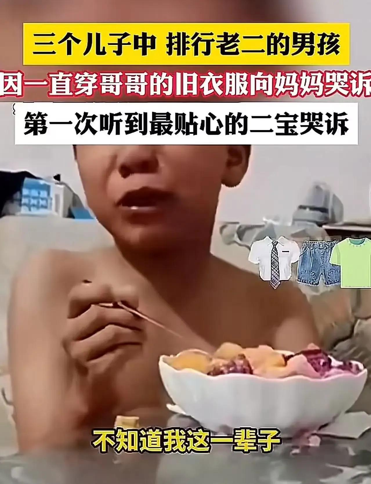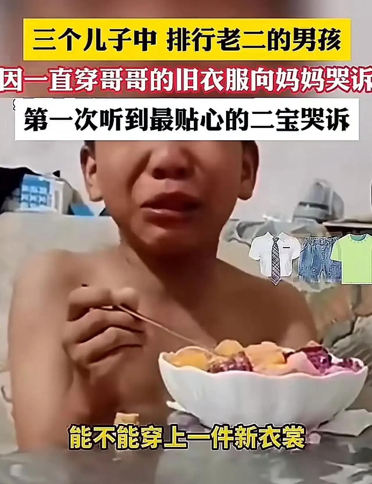 家里三个儿子,妈妈给哥哥和弟弟都买了新衣服,却没给老二买!老二忍不住问妈妈:“妈妈,你为什么不给我买一件新衣服呢?我为什么要一直穿哥哥的衣服?”妈妈说:“哥哥长高了,衣服小了必须要换新衣服,给你穿刚好……”可老二又说了一句话,让妈妈呆住了! “可是妈妈,我也长高了啊!为什么你就不给我买新衣服呢?”这个问题像一把无声的刀,直直戳在妈妈的心上。她愣了一下,眼角微微泛红,却努力挤出一抹笑:“宝贝,妈妈当然会给你买的,只是……只是还没到时间。”然而,老二的眼神里,却多了一份不甘与委屈。 这一幕,或许在很多家庭都曾上演过。看似简单的“衣服”背后,藏着的是父母对子女不同的期待与偏爱,亦或是对子女成长的不同理解。有人会说,父母的爱是平等的,但在现实中,偏爱似乎无可避免。那为什么偏爱会让孩子如此敏感?又为何一个简单的衣服问题,能引发如此深刻的情感波澜? 其实,孩子的心比我们想象得更细腻。衣服不仅仅是遮体之物,更是他们自我认同和归属感的象征。当一个孩子看到哥哥穿着新衣服,心里难免会觉得“我也想要一样的”,这是一种对平等的渴望,也是对被爱的渴望。而当父母无意中忽略了这种需求,孩子的心会变得敏感甚至自卑。 更深层次地看,这个故事折射出一个普遍的社会现象:在快节奏的生活中,我们是否也在无形中用物质去衡量孩子的爱?我们是否在不经意间,把“成长的标志”变成了“爱的衡量标准”?而实际上,孩子最需要的,或许不是一件新衣服,而是那份被理解、被关心的温暖。 这位妈妈的反应让人心疼,也让我们反思:在爱的表达上,我们是否也曾像她一样,陷入“忙碌的惯性”,忽略了孩子真正的感受?其实,每个孩子都渴望被看到、被理解。那份“新衣服”的背后,是对孩子成长的期待,也是父母对子女深深的爱——只不过,有时候,我们需要用心去感受,用心去表达。 这个故事,激起了我们每个人心中那份对家庭、对爱的渴望。它提醒我们,爱不是一味的物质堆砌,而是用心的陪伴和理解。也许,下一次当我们为孩子买衣服时,不妨多问一句:“你喜欢这件吗?”或者,“你觉得自己还需要什么?”这份细心,远比一件新衣服更能温暖孩子的心。 让我们都成为那个懂得用心去爱的父母吧,因为,真正的爱,从来都不需要“买”——它只需要一份用心、一份理解。读到这里,你是不是也在心里暗暗发誓:下一次,给孩子的不只是物质,更是那份无声的陪伴和爱?老二向妈妈哭诉