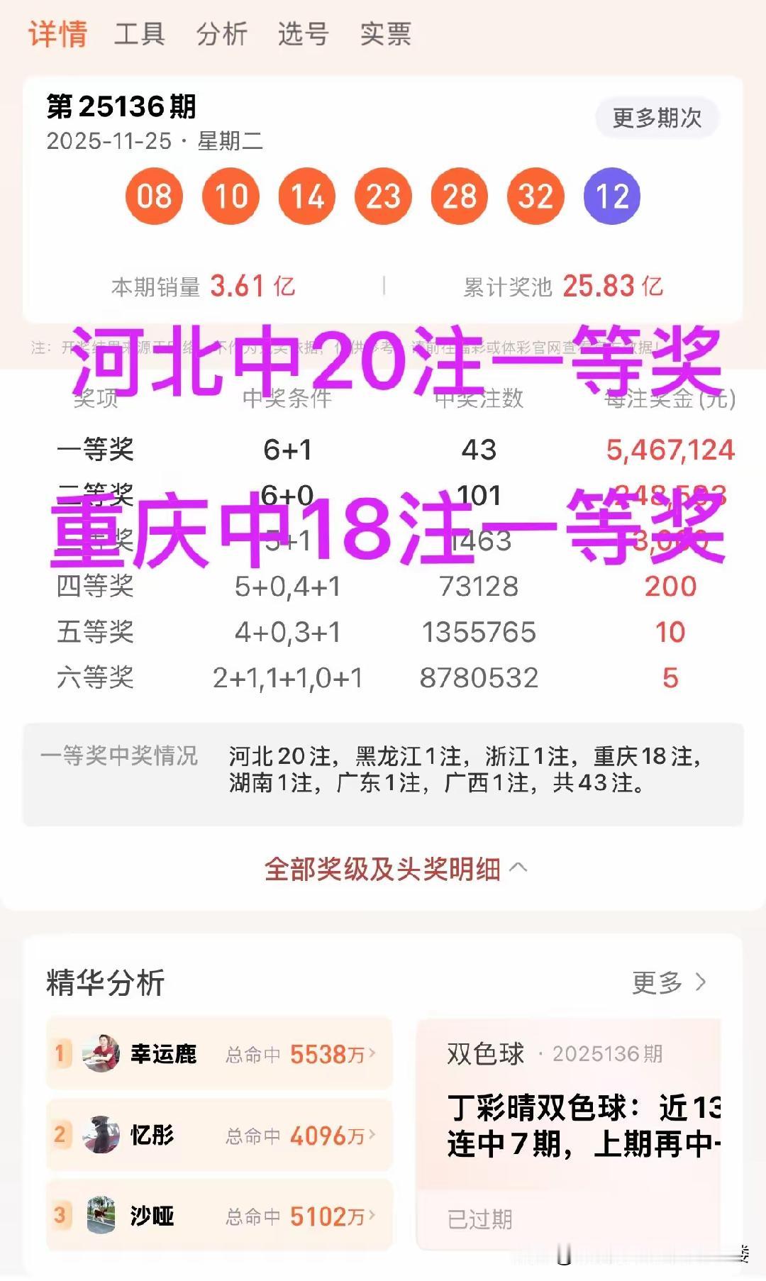 昨晚双色球开奖结果令人震惊,河北竟中出二十注一等奖,预计奖金高达一亿。以2022年5月26日第2022059期开奖为例,一等奖单注奖金571万余元,20注一等奖分布于全国9地,河北中了1注,那次一等奖总奖金达1.14亿。6月5日第2022063期,20注头奖分落12地,河北中了3注,单注奖金541万多元。巨额奖金着实让人艳羡,小道消息称这二十注头奖出自唐山。不过,彩票还需理性对待,就当作生活乐趣。