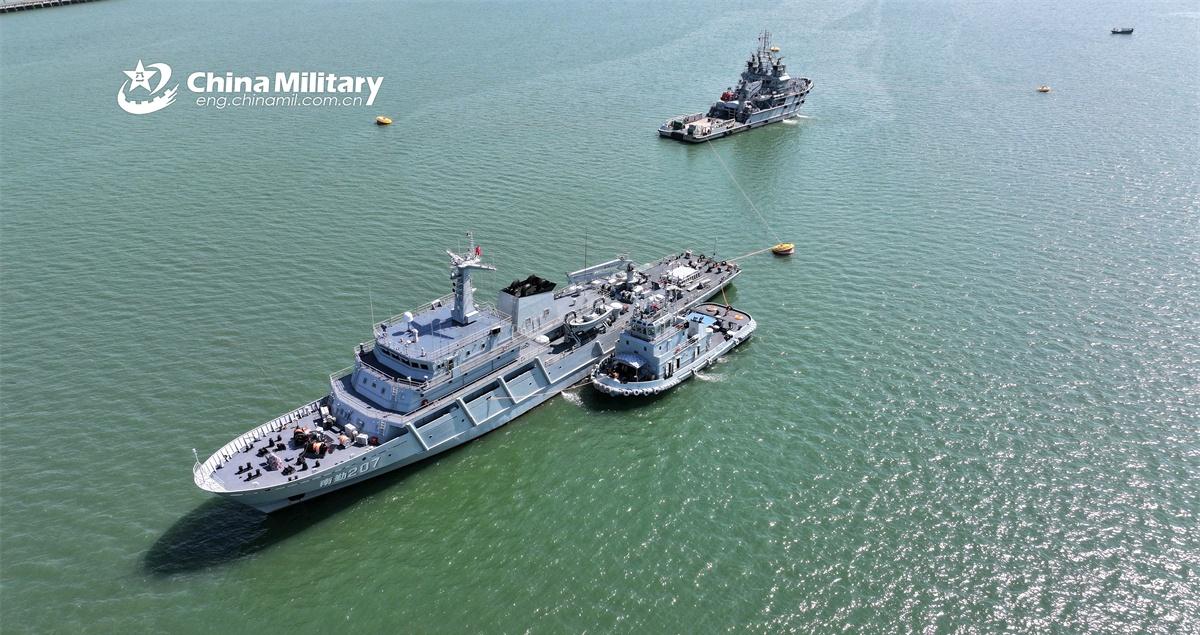 露脸不多的南舰新型消磁船 南勤207船为7000马力中拖进行消磁作业 烽火问鼎计划中国海军