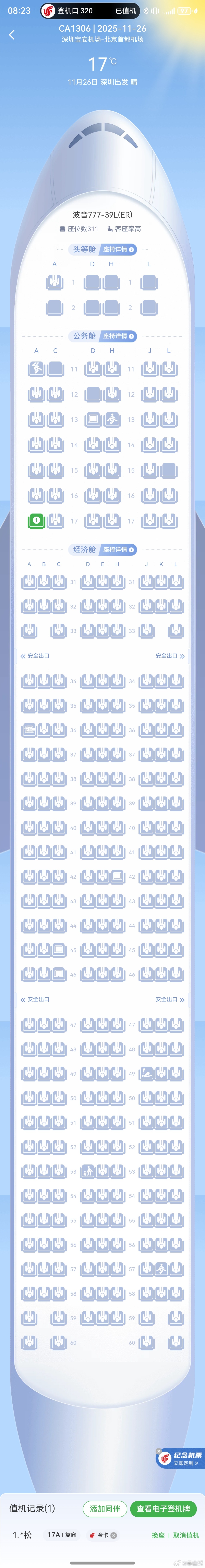 早安老铁们又被升舱了上次时开深圳这次是回北京