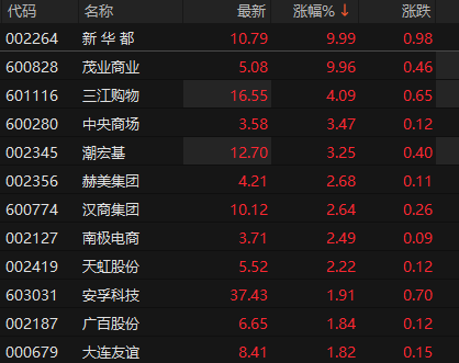 零售板块震荡拉升 茂业商业2连板
