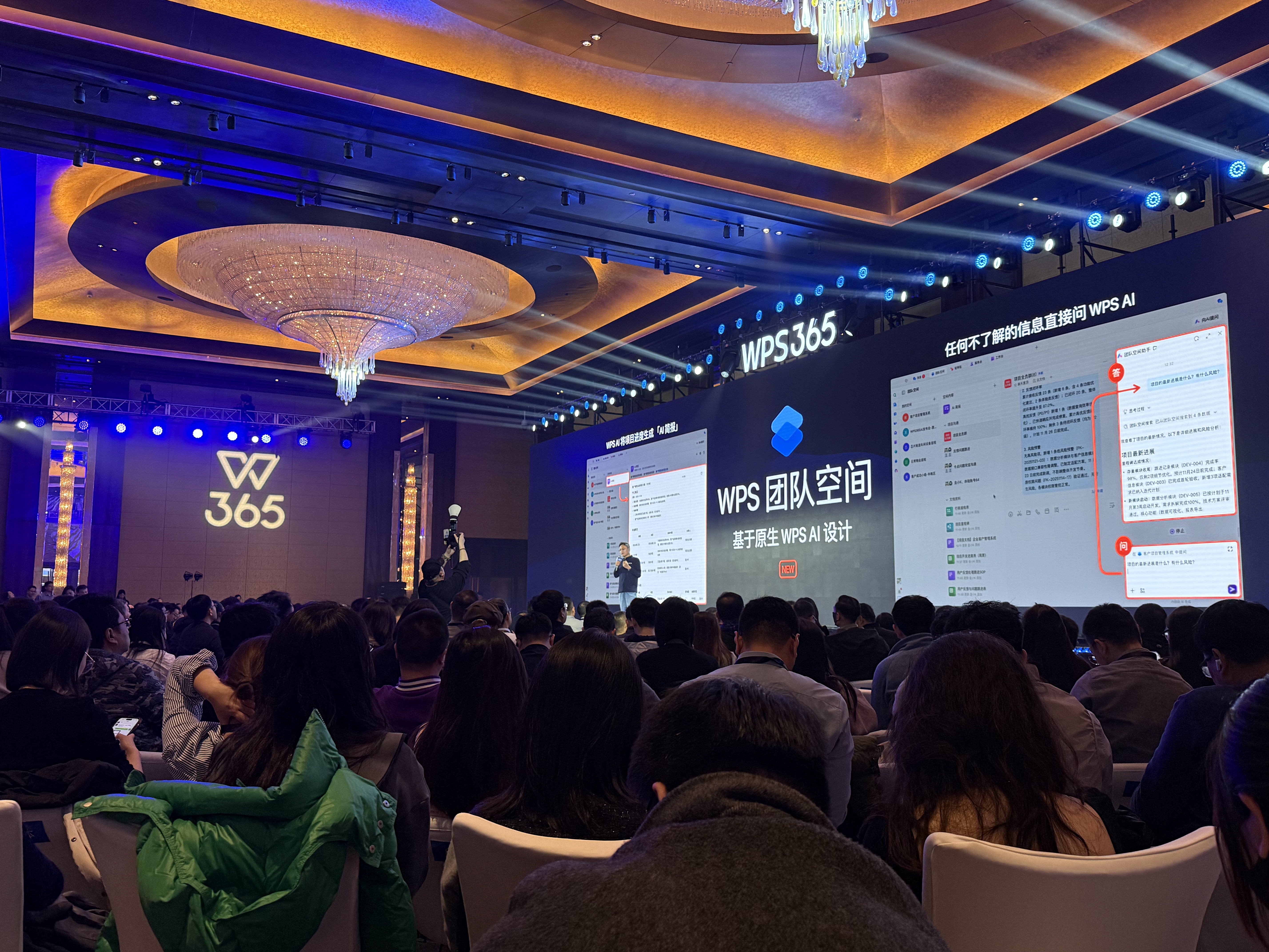 他重点介绍了WPS365本次推出的一站式团队协作工具“团队空间”。它支持围绕单个项目或联合项目搭建专属协同空间,能集合团队相关的消息、文档、会议纪要等内容,方便团队更精准地用AI获取业务知识。