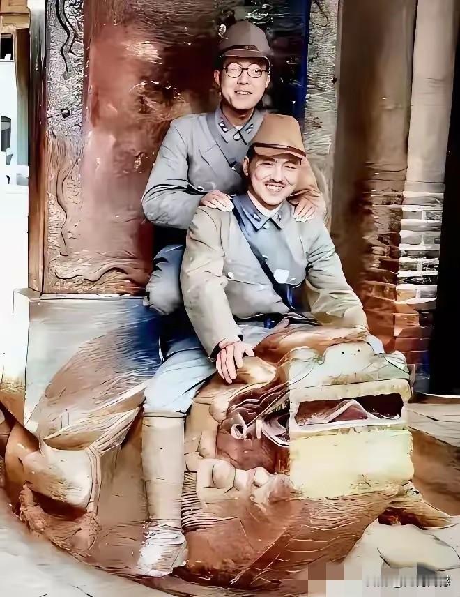 这两个日本鬼子岁数看起来已经不小了,这属于典型的老鬼子,笑起来皮笑肉不笑,整个脸上的表情也比较阴险,不知道心里在琢磨着什么,也许这两个家伙骑在驮碑的神兽上,心里产生了一种得逞后的满足感,所以才拍出一副这样的嘴脸!