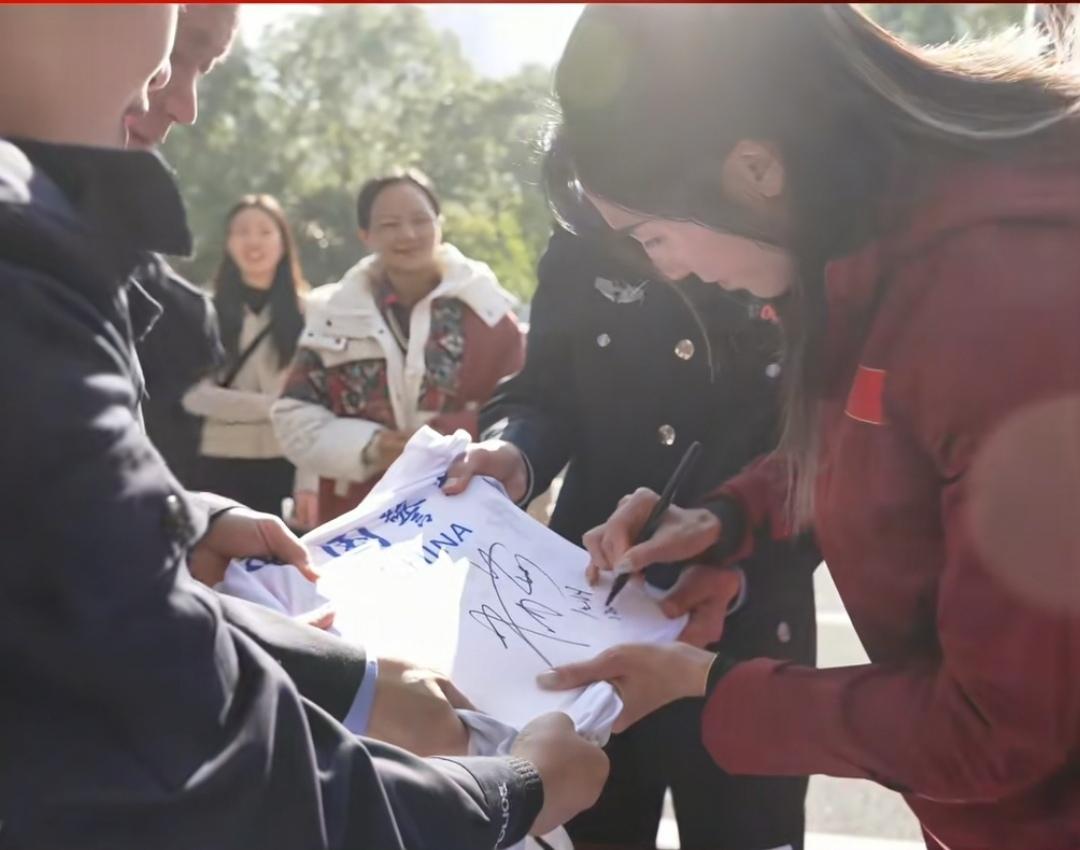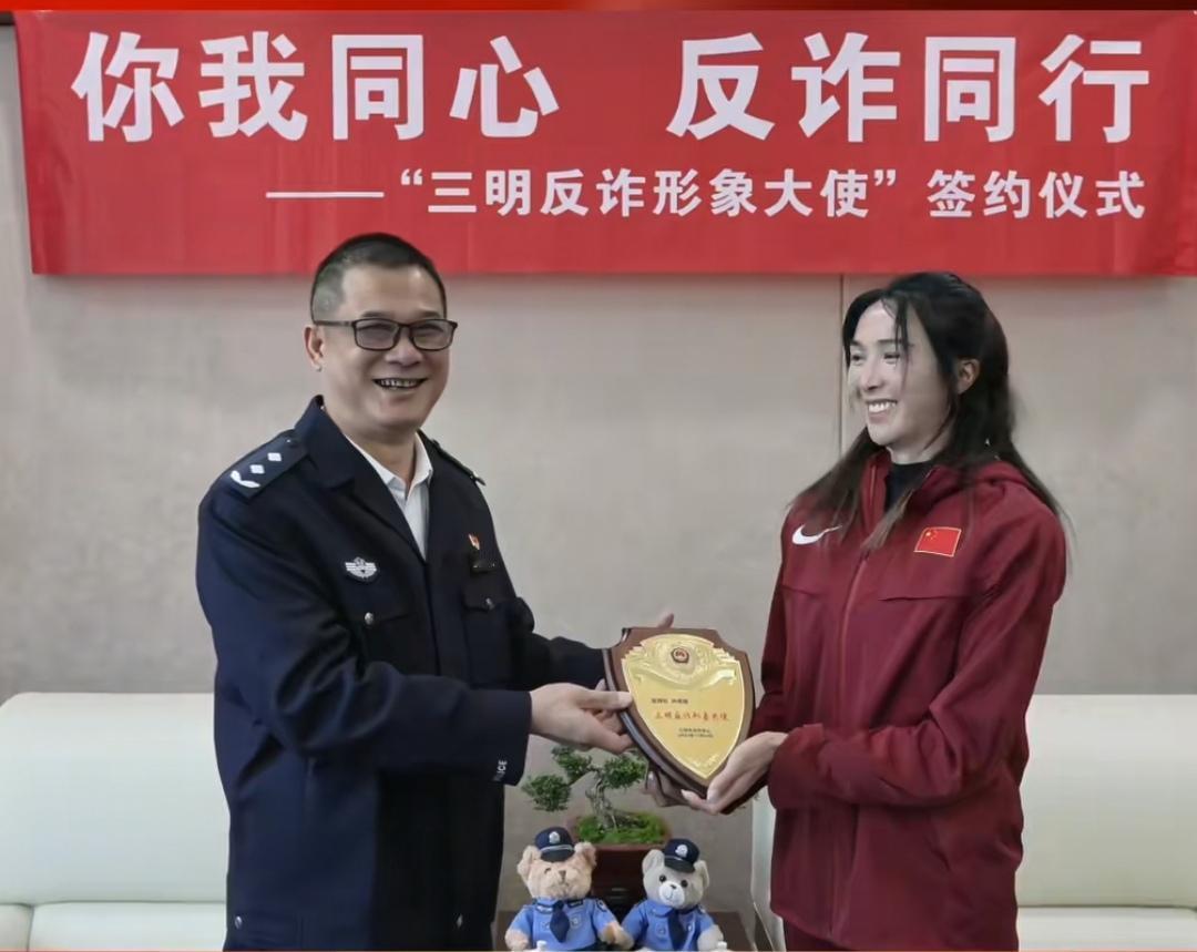 林雨薇又有了新身份,成为了福建三明“反诈天使”,投身公益宣传活动。 林雨薇穿着一身红色运动服坐车抵达后,受到工作人员热情接待,工作人员递上鲜花后,进行了座谈。 座谈的时候,林雨薇坐的很端正,收到了卡通玩偶形象和木制工作牌,并参加了相关签名活动,林雨薇在家乡特别受欢迎。