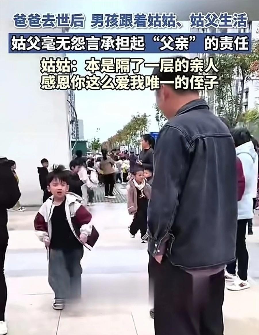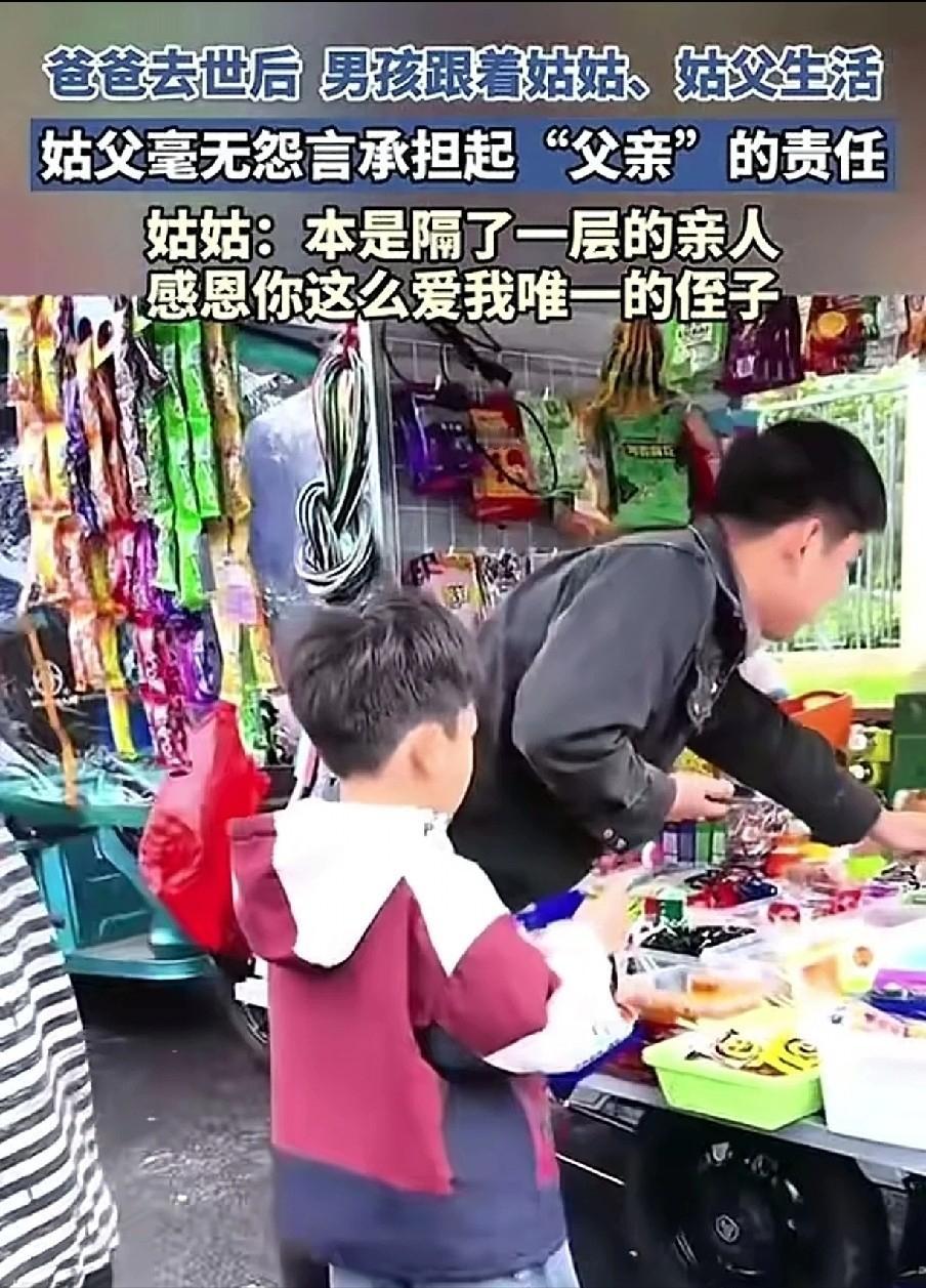 安徽蚌埠,5岁男孩爸爸去世,妈妈外出打工,姑姑心疼男孩,将他接回自己家照顾。没想到,男孩姑父的态度却让姑姑出乎意料! 很多人都明白,穷人家的日子经不起折腾,一家人能吃饱喝暖都不容易,再多添一张嘴,哪怕是自家亲戚,也能压得人喘不过气来。 那年,姑姑接到娘家消息,说她五岁的侄子要暂时寄住过来,孩子父亲走得早,母亲没办法,只能外出打工讨生活。 姑姑听完,人都怔住了,她低头看着手里那双被汗打湿的筷子,再看看桌上半碗快见底的稀饭,心里打鼓得不行。 自己家也不富裕,女儿读二年级,每个月都要抠着钱过,丈夫做水电维修的,天天在工地上跑,拿的全是辛苦钱。 她越想越怕,生怕丈夫听了要发火,她反复琢磨了好多天,做好挨骂的准备,选了个晚上,红着眼圈把这事小声告诉了丈夫。 可没想到,生活有时候比人想象的要柔软得多,丈夫那粗着嗓门、常年吃冷馒头的汉子,听完连眉头都没皱一下,好像早就知道她在操心。 他没说大道理,也没问原因,只是点点头:“那就接吧。”第二天,侄子还没来,他自己偷偷绕远路去了童装店,对着一堆尺码看得眼睛都直了。 平时给自己孩子买衣服都挑便宜的,那天却咬牙给侄子挑了套最贵的恐龙秋衣,他表达感情笨,但他觉得孩子来了,就不能让人看不起,得给孩子一件像样的新衣裳,让他知道:来了就是一家人。 侄子被送来的前一周,每天晚上都哭,抱着个旧玩具不撒手,姑姑哄不住,丈夫也不会那些温柔话。 他就从工地揣回块光滑的鹅卵石,一本正经塞孩子手里,说这是“大胆石”,抓着它,害怕的东西都靠不近,孩子当真了,那晚哭得轻了不少。 从那以后,这家每天早上都忙得像打仗一样,天没亮,丈夫就起来煮面,侄子碗里永远比亲闺女多一个荷包蛋,他一本正经地说:“男娃长身体,得吃好。” 送孩子上幼儿园那天,侄子不敢进门,眼泪哗哗的,这个从不请假的汉子,竟拿着皱巴巴的纸条请假,自己蹲在学校围墙外冷风里一早上,只为了让孩子知道:你回头,我就在这。 别人都说带娃是女人的事,但在这个姑父身上,你能看到一种不需要血缘的父爱。 他没啥文化,开家长会穿着洗得发白的工装,老师每说一句,他都歪歪扭扭写在拆开的烟盒纸后面。 孩子把他最贵的工具盒拆得乱七八糟,他不但不生气,还一件件地教孩子认识工具,孩子挑食不吃青菜,他把菜剁碎塞进饺子里,骗孩子那叫“长高馅”。 周末,他兜里没几个钱,却总舍得带孩子出去买玩具、吃点好的,邻居笑他:“你就是姑父,至于这样吗?”他就笑,憨得很,连嘴角的渣都忘记擦。 其实,只有极少数人知道,他小时候也寄人篱下,十岁就开始看别人脸色吃饭,他太清楚那种小心翼翼、不敢多吃一口肉的感觉,所以现在,他拼命给侄子撑伞,让孩子不要再有“外人”的感觉。 慢慢地,孩子变了,放学一看到他,就像小炮弹一样冲过去;家里有人敲门,他抢着给姑父拿拖鞋;自己舍不得吃的奶片,也会塞进姑父工具包里,虽然最后都被钳子压成粉了,但心意最珍贵。 姑姑看着丈夫一视同仁地给侄子买零食,顺手也塞他几个草莓,那一瞬间她才真正明白——亲情从来不只靠血缘维系。 这个水电工姑父,用一双粗糙的手,把“视如己出”这四个字活生生落在了日子里,落在了一个没有父亲的孩子最需要温暖的地方。