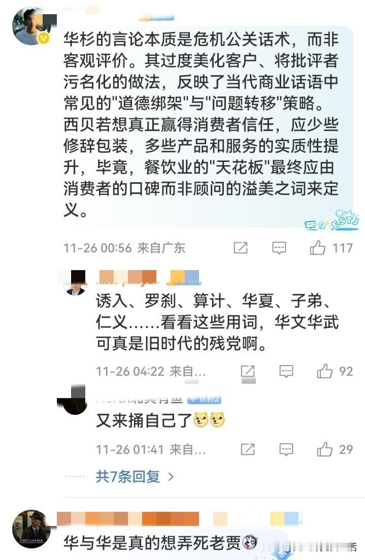 理解不了华与华这个老板,明明西贝事件已经平息了,他又出来递刀子,这是嫌西贝死的不透吗? 他的话音一出,老罗立马掐上他了,吓得连声都不敢吭。 网友的评论太精彩了,你这作为咨询公司就不能盼着点企业好吗?支持老罗公开录音,看他当时是怎么求老罗的[捂脸][捂脸]