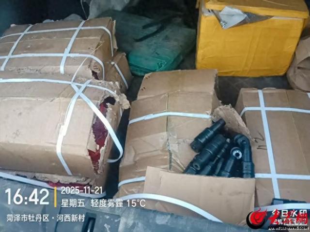 11月21日上午9时20分许,牡丹区环境卫生服务中心职工冯保华在日常巡查保洁途中,于长城路与昆明路交叉口东北角发现一批遗失货物。经后续核实,该货物共6箱,均为汽车精密配件,价值约两万元,系失主荣先生不慎丢失。