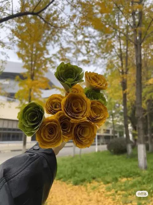 武汉一花店老板用10小时,将1000片银杏叶做成33枝“玫瑰花束” “这哪里是花束,分明是把秋天揉进了怀里!”最近武汉街头的一幕,让无数人直呼“治愈”——洪山区一家小花店里,老板李姐正小心翼翼地将银杏叶卷成玫瑰状,1000片金黄的叶子在她手中翻飞,最终变成33枝独一无二的“银杏玫瑰”,刚摆上柜台就被抢空。 李姐开花店5年,每到秋天看着路边飘落的银杏叶,总觉得“浪费可惜”。前段时间刷到有人用落叶做手工,她突发奇想:“武汉的秋天这么美,不如把秋意做成花束,让大家把季节带回家。”为了做出逼真的造型,她反复试验:先将银杏叶熨平、修剪,再用棉线层层缠绕固定,一片叶子没卷好就重新来过,手指被磨得发红也不放弃。 10个小时里,她没喝几口水,饿了就啃两口面包,当最后一枝“玫瑰”完成时,窗外已经天黑。让她没想到的是,这些“落叶花束”刚被顾客拍到网上,就引发全网热议:“太有创意了,这才是秋天的正确打开方式”“送给妈妈一定很开心,比真玫瑰更有意义”。有顾客专门从汉口赶来,就为了买一束送给即将结婚的朋友,“寓意着‘一叶知秋,一生有你’”。 有人问李姐“这么麻烦值得吗”,她笑着说:“每片叶子都有生命,能让它们以另一种方式延续美好,就是最开心的事。”其实生活中的小美好从来都不遥远,一片落叶、一朵小花,只要用心发现,就能创造出意想不到的温暖。 你觉得银杏玫瑰比真玫瑰更有意义吗?如果是你,会用落叶做什么创意手工?欢迎在评论区聊聊你的想法!热点话题 银杏落叶玫瑰花