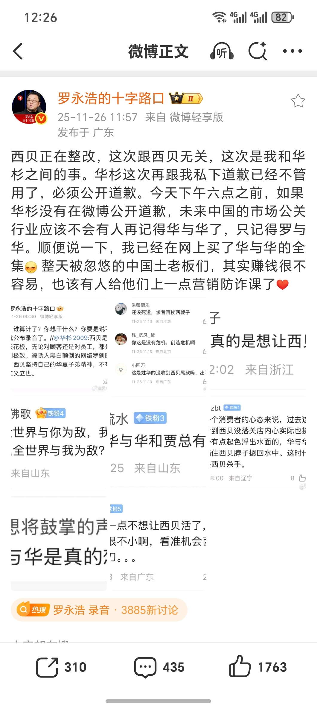 罗永浩 录音怎么回事??西贝事件又整续集了?华与华原来才是危机公关的最大反面教材西贝前几天不是降价,增加现炒比例本来对大家都是好事这时候华杉跳出来,莫不是又缺活了出来刷存在感