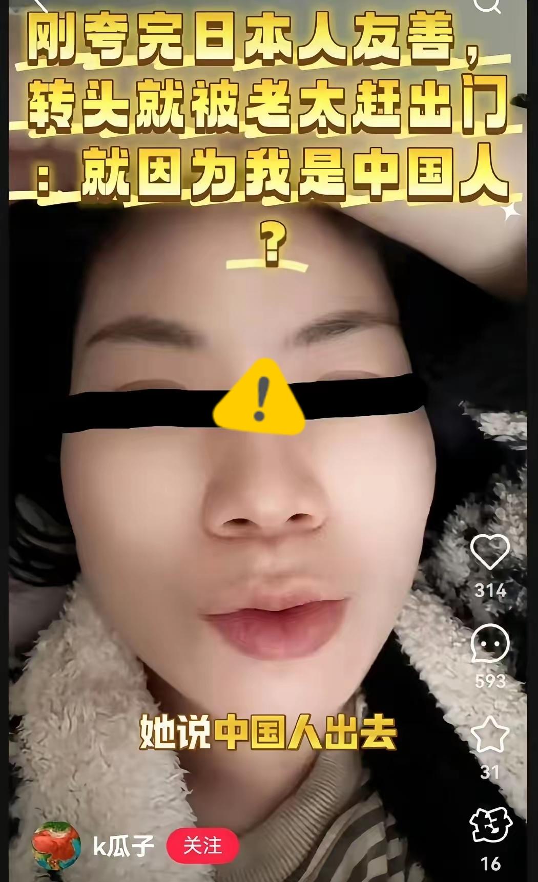 真是笑死我了,这位前往日本的美女刚刚夸完日本人特别的友善,日本人特别的乐于助人之类,转眼之间,她的房东日本人就要把她赶出去,就因为她是中国人! 美女博主当初有多意气风发,被驱赶时就有多狼狈。入住不到一周,房东上门撂下生硬中文:“必须搬走,因为你是中国人”,连缓冲的余地都不给。 她之前还在社交平台狂吹,说日本街头整洁、店员礼貌,直言“网上对立都是谣言”,把“日本友善”夸得天花乱坠。这波反转,简直是现实给她上了最狠的一课。 更讽刺的是,她当初不顾国内“特殊时期谨慎赴日”的提醒,执意前往,如今连夜打包行李找住处,那份狼狈和当初的炫耀形成刺眼对比。 这可不是孤例。2025年相关数据显示,赴日中国公民遭遇歧视性对待的投诉同比上涨37%,租房、消费领域的差别对待最为集中。 日本的“礼貌”很多时候是表面功夫,是陌生人之间的距离感,而非真正的包容。一旦触及立场或身份,那份伪装的友善就会瞬间崩塌。 有些人心甘情愿被表面现象迷惑,把商业化的礼貌当成发自内心的善意,忽略了偏见可能藏在任何角落。这次事件就是最真实的照妖镜。 歧视从来都藏不住。房东直言不讳的“不欢迎中国人”,暴露的是骨子里的偏见,而非所谓的“误会”,这种直白的伤害比委婉拒绝更让人不齿。 出门在外夸赞他国优点没问题,但不能盲目美化,更不能否定自身,贬低同胞的提醒。过度美化只会让自己在现实面前摔得更惨。 尊重是相互的,没有哪个国家值得被无脑吹捧。我们可以欣赏别人的长处,但更要守住自己的底线,看清偏见的本质,不做自欺欺人的人。 各位读者你们怎么看?欢迎在评论区讨论。