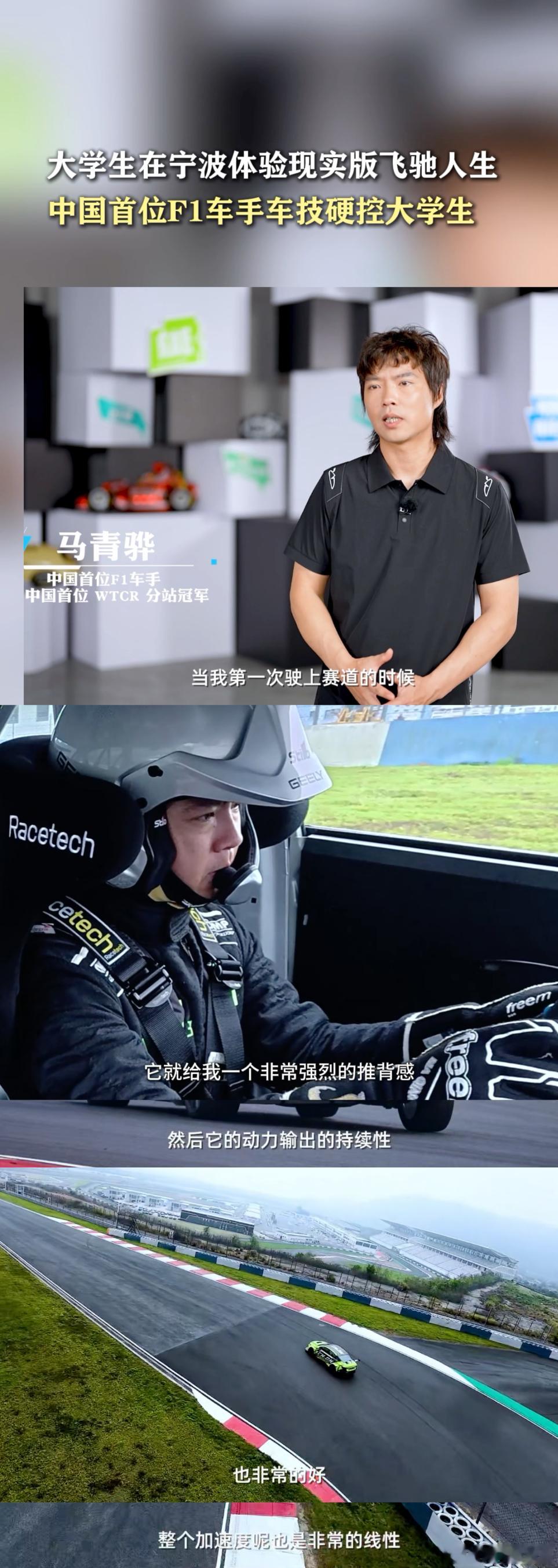 大学生在宁波体验现实版飞驰人生 宁波那赛道上,大学生们如同专业赛车手,风在耳畔疾呼,心跳和引擎同频,现实版“飞驰人生”上演,这感觉超酷炫~😄中国首位F1车手车技硬控大学生